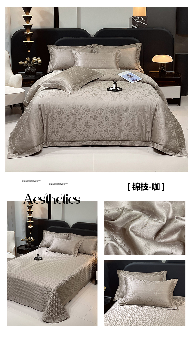 (总)畅畅家纺 2026新款高档100支长绒棉高定提花夹棉床盖纯色四件套,花屿间-兰,锦枝-咖,罗维娜-香槟,雅颂-粉,雅颂-灰