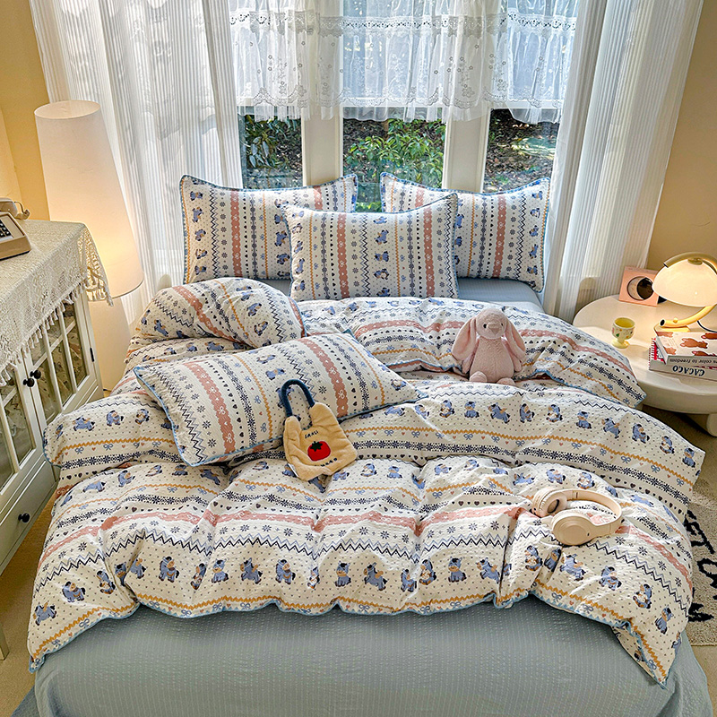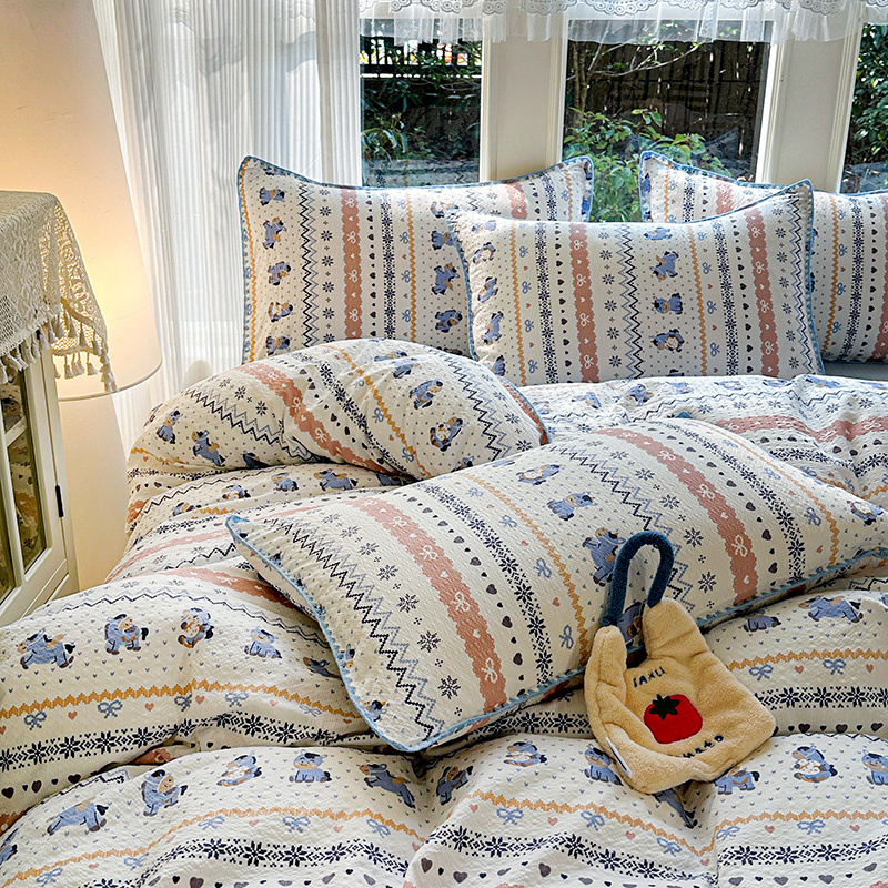 当前位置: 91家纺网 > 商品网购 > 床品套件 > 四件套 > 化纤普通四件套 > 梵希雅 2026新款费尔岛风贝壳边泡芙棉四件套床单被套宿舍三件套单品 雾蓝自由马