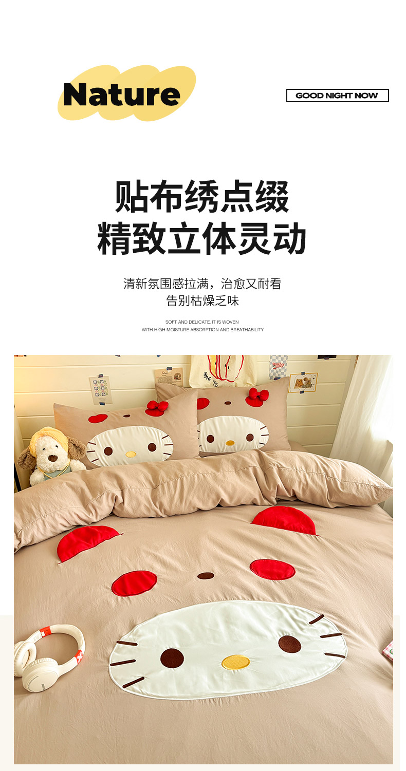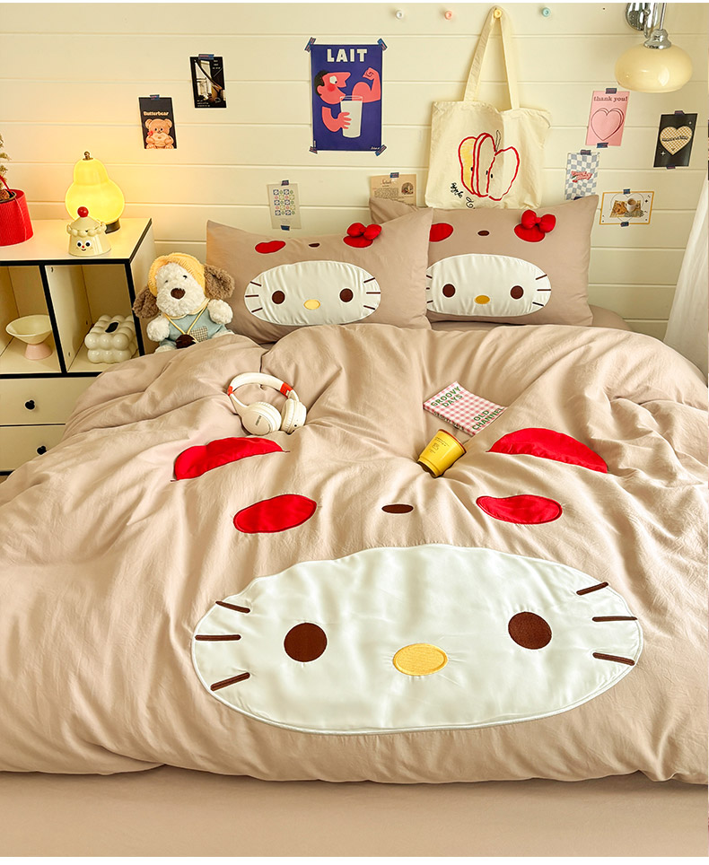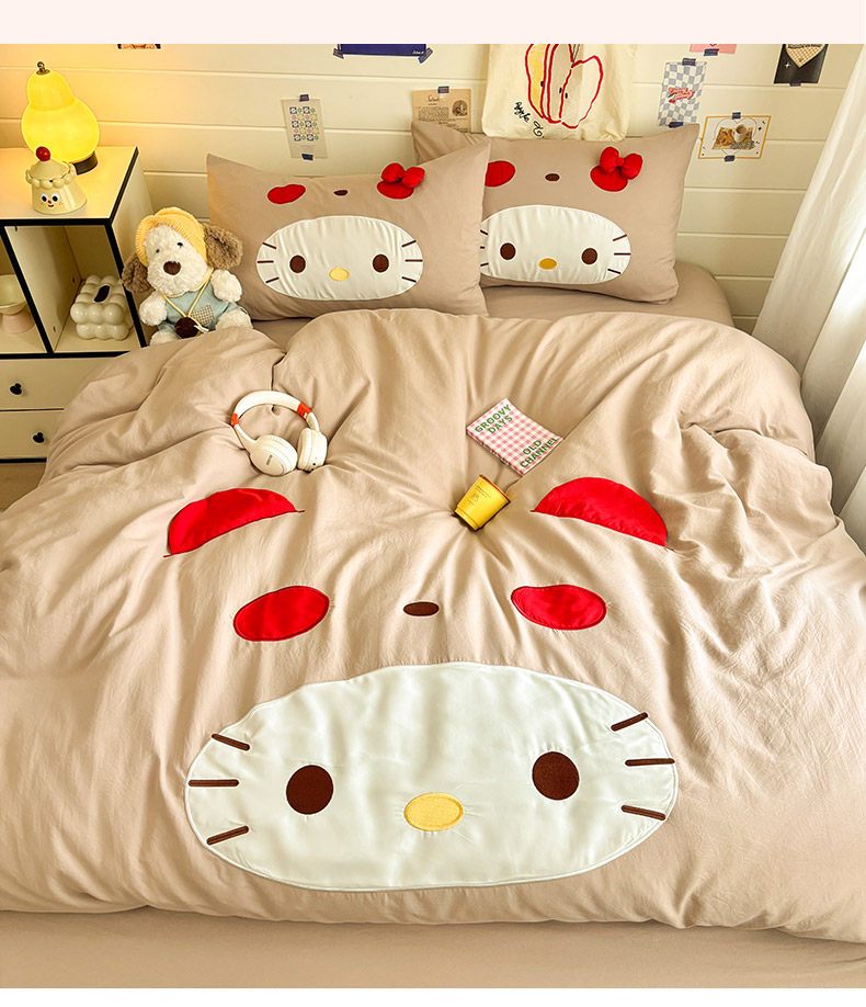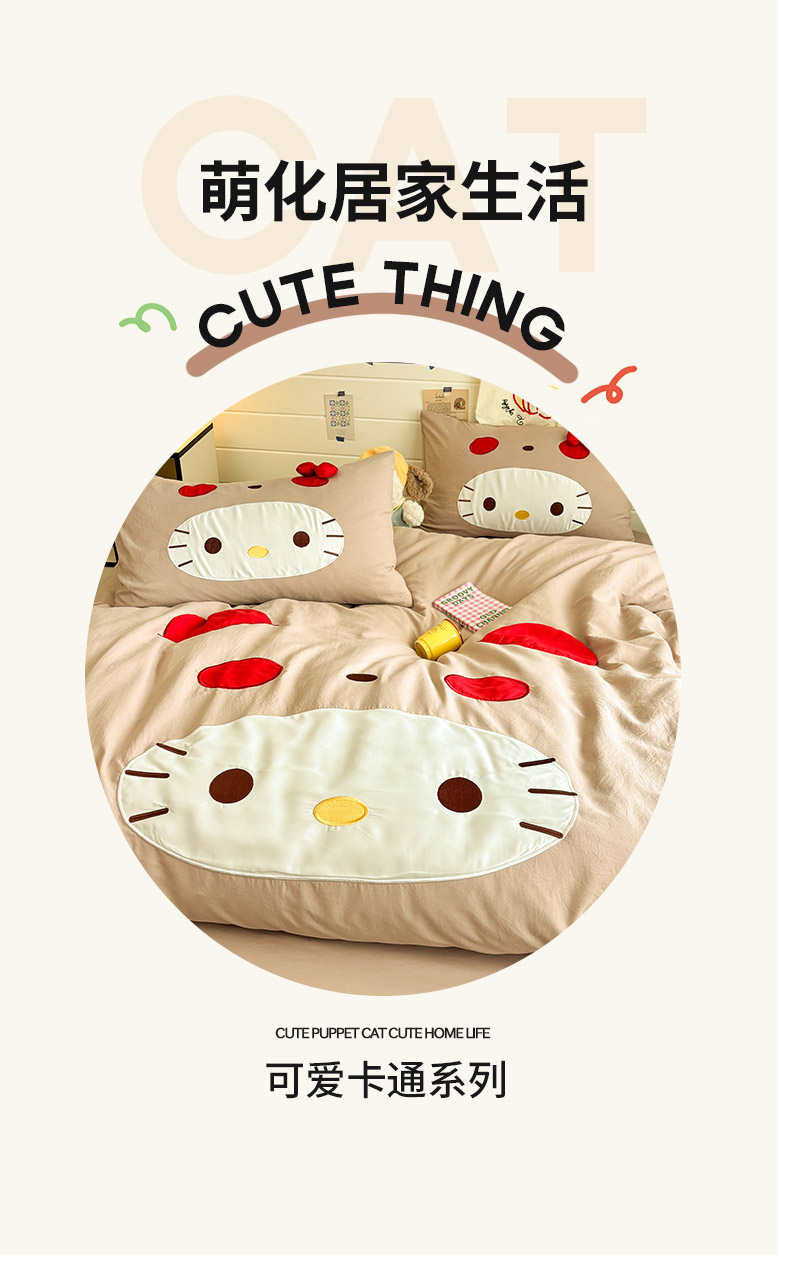 色鬼布艺高端家居主号 2026新款韩国设计师款仿古棉可爱毛巾绣四件套 萌萌猫咪-驼