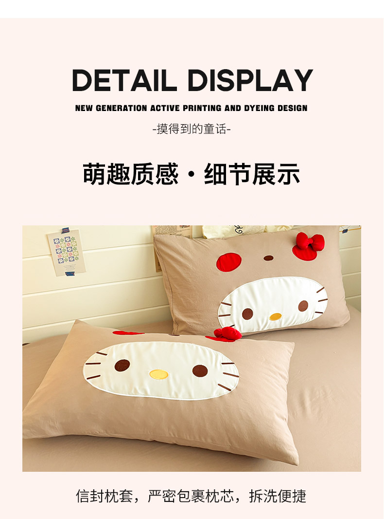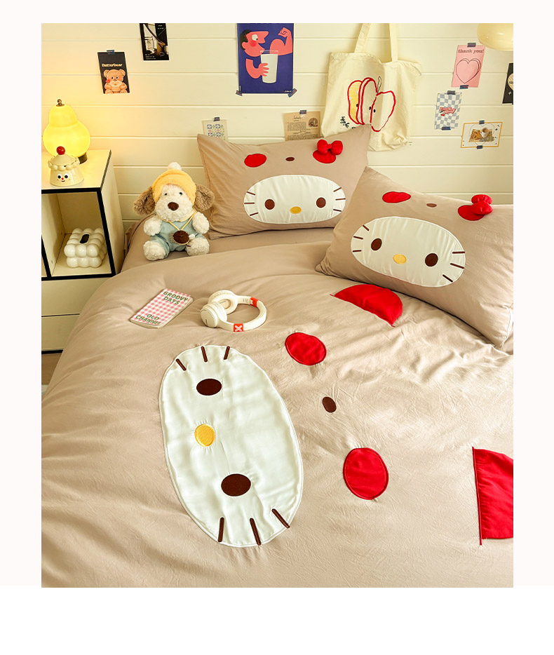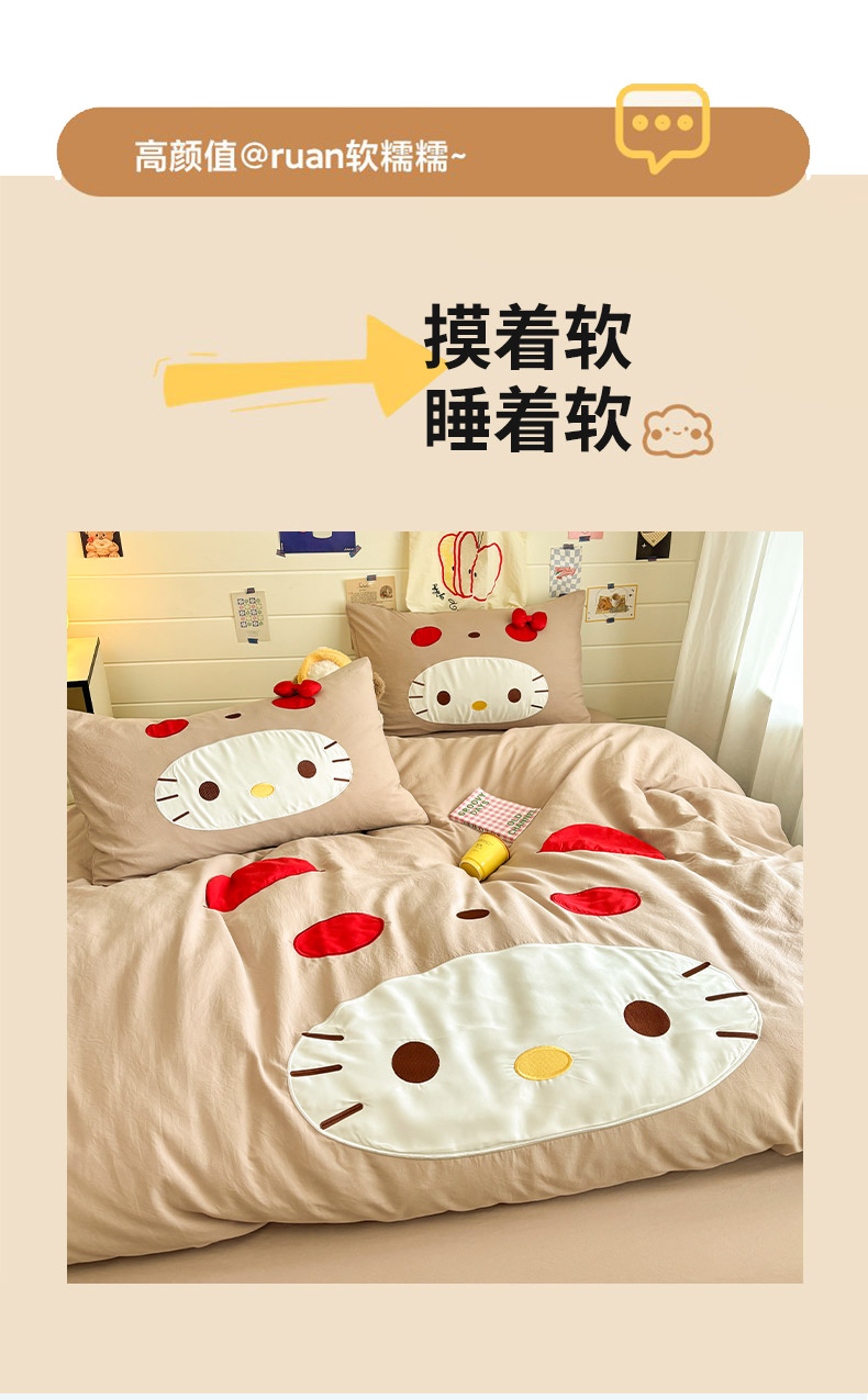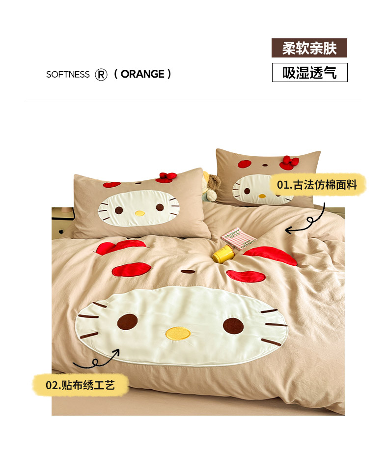色鬼布艺高端家居主号 2026新款韩国设计师款仿古棉可爱毛巾绣四件套 萌萌猫咪-驼