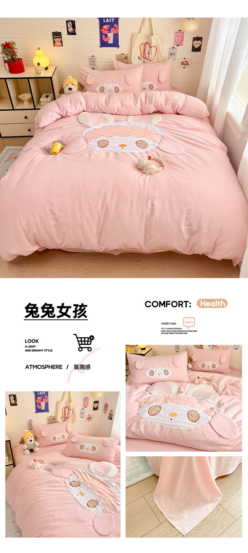 (总)色鬼布艺高端家居主号 2025秋冬新款网红款水洗棉四季款四件套,豹纹熊-粉,豹纹熊-绿,彩虹兔,格子熊,公仔蓝,梦幻粉,梦幻蓝,棋盘格公仔,太阳花粉,天使熊-粉,天使熊-咖,小熊头,熊头白,熊头橙,熊头咖,熊仔白