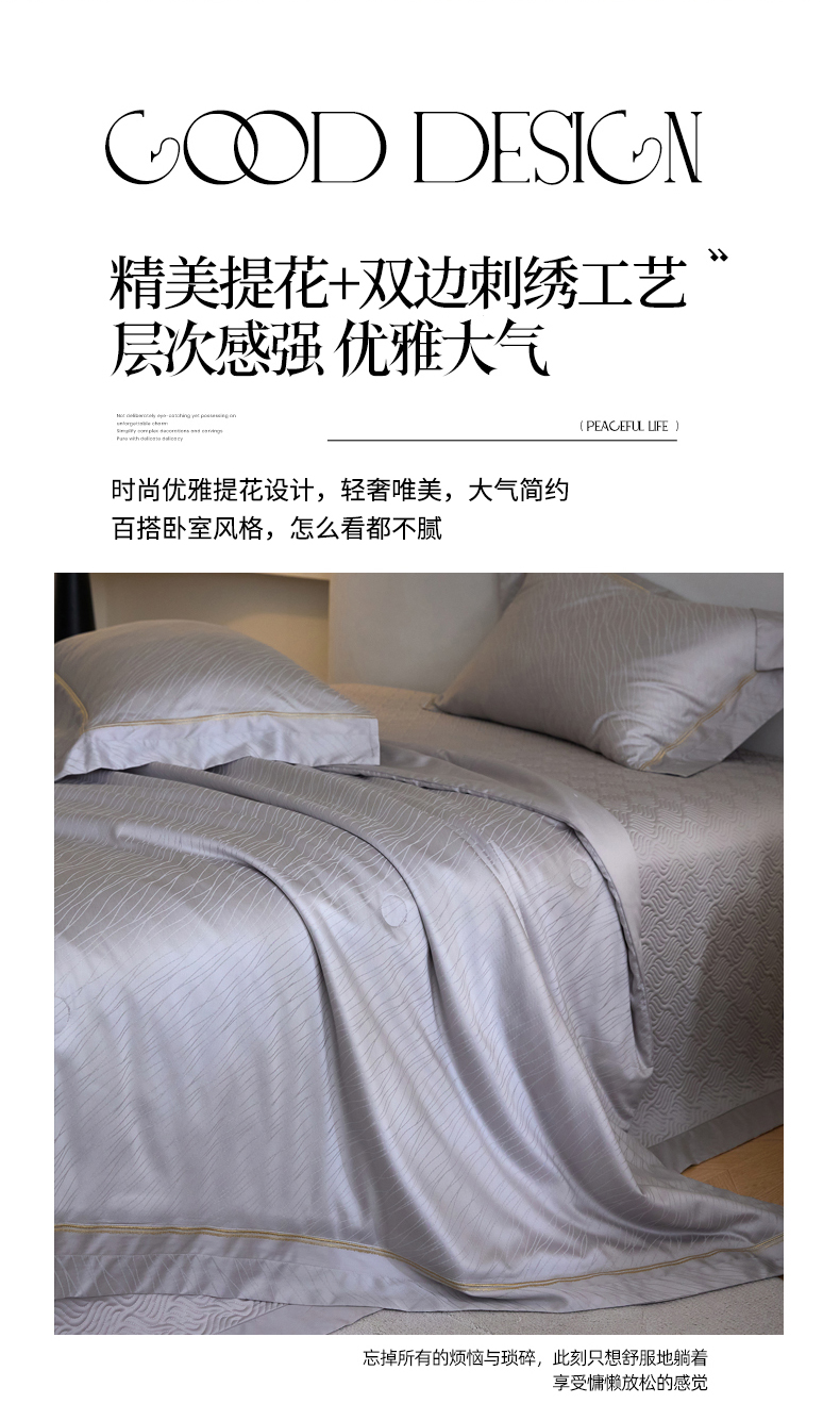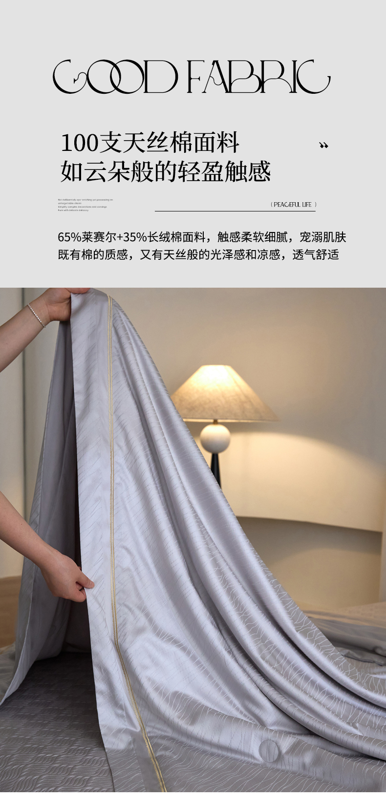 当前位置: 91家纺网 > 商品网购 > 床品套件 > 四件套 > 夏被四件套 > 淼铭家纺 2026新款天丝棉提花床盖夏被夏凉被空调被四件套-半夏系列 半夏-灰色