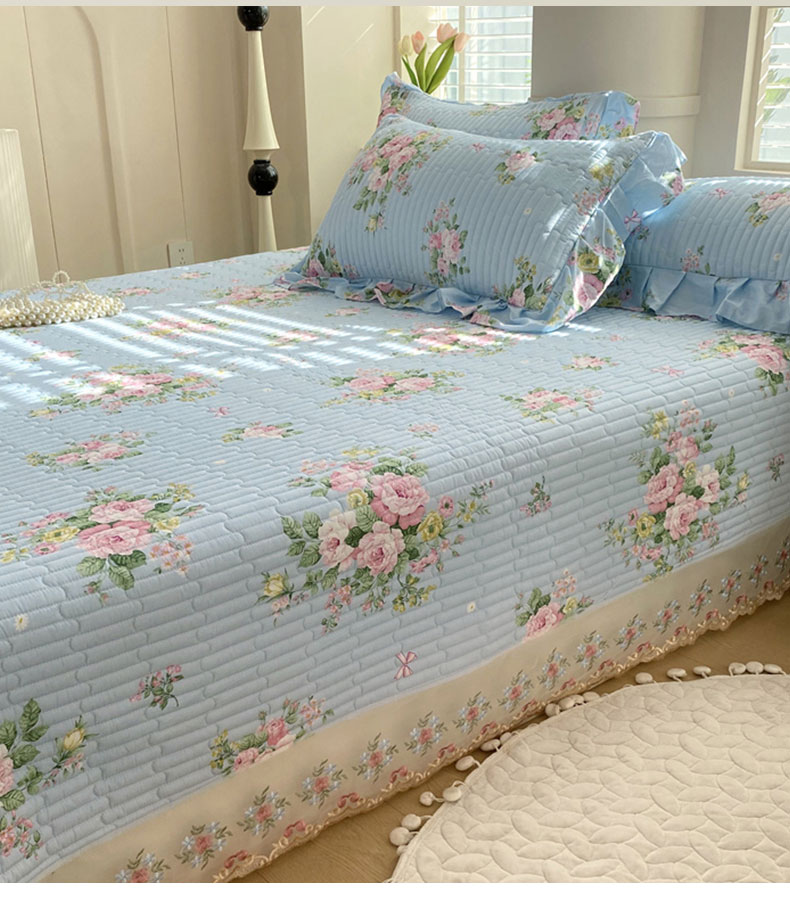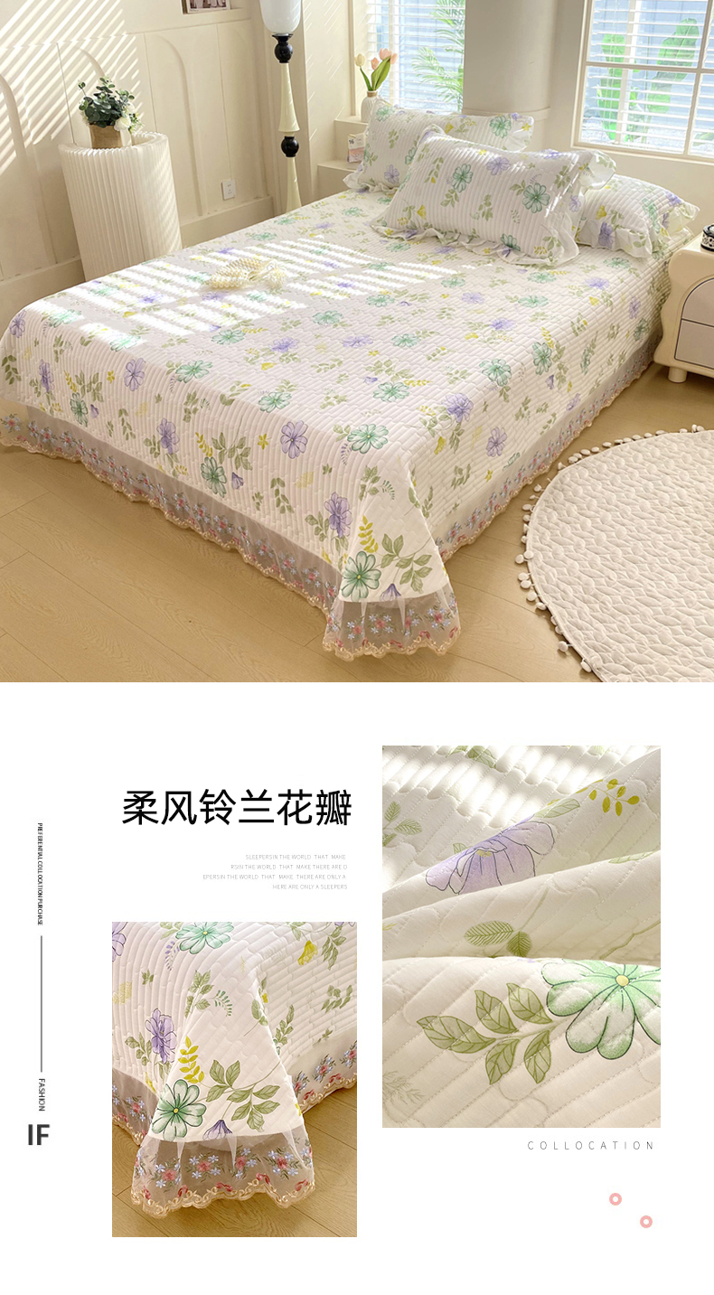 欧妮家纺 2026新款全棉面料蕾丝花边夹棉绗缝床盖 全棉蕾丝款床盖-宫廷庄园粉