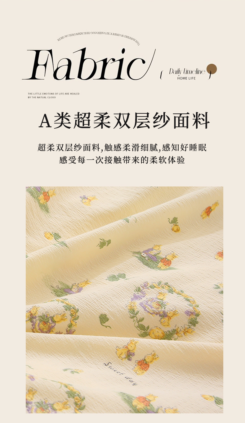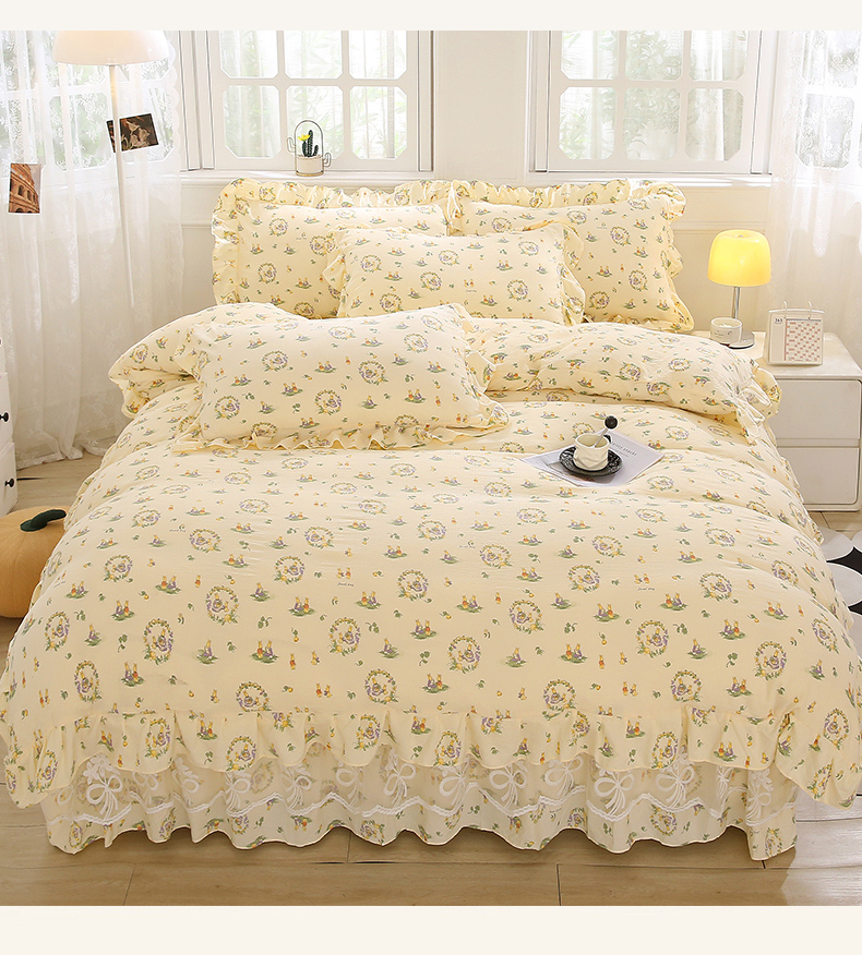 当前位置: 91家纺网 > 商品网购 > 床品套件 > 四件套 > 其它四件套 > 欧妮家纺 2026新款A类双层纱蕾丝花边床裙四件套 兔子欢喜