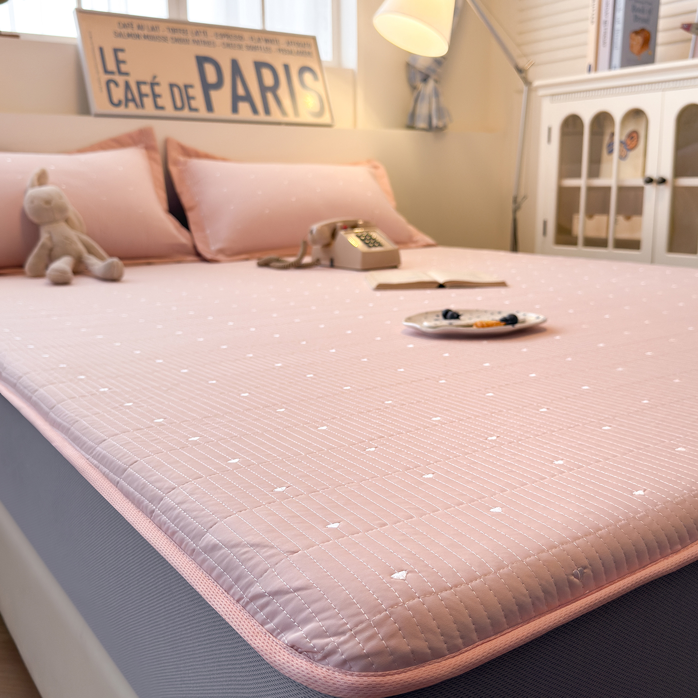 • 91家纺网 家纺一手货源 找家纺 懒猫家纺 2026新款满天星绗绣莫兰迪色系床席床笠款凉席 海盐气泡-床笠款