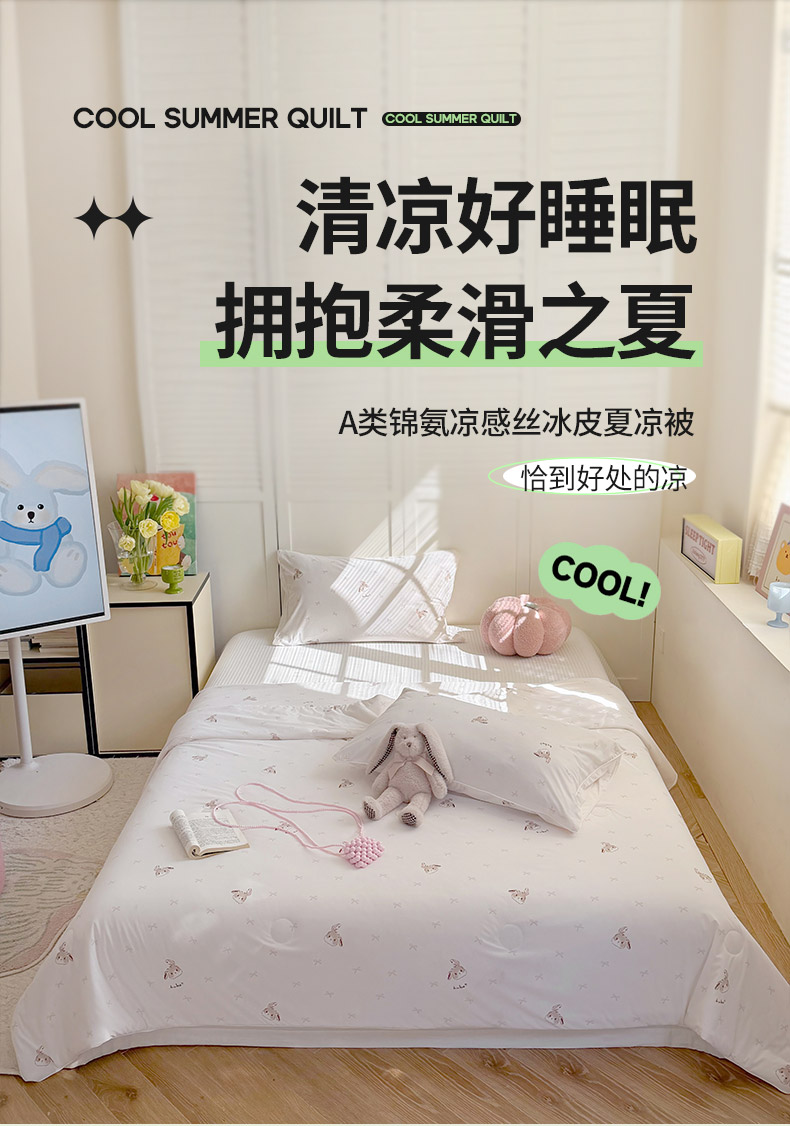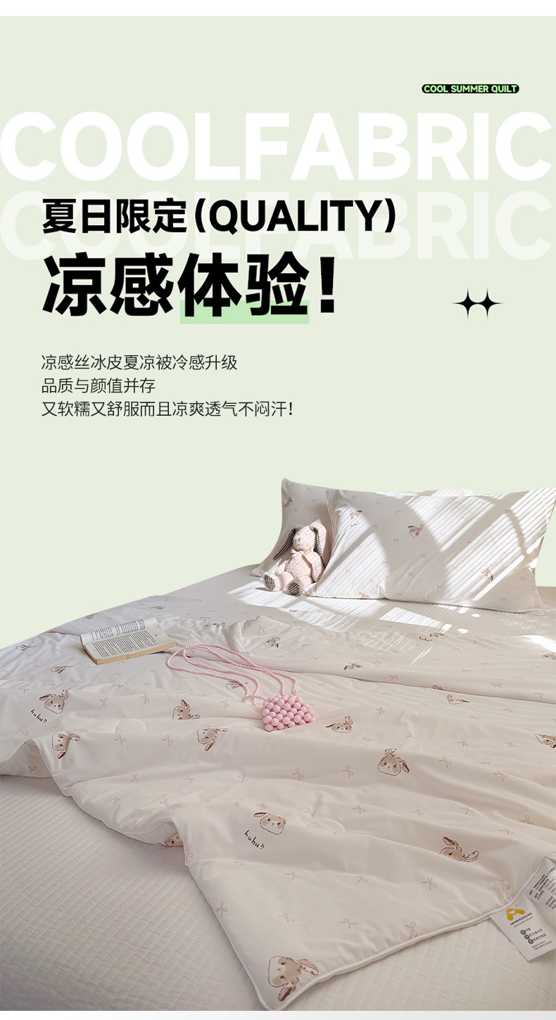• 91家纺网 家纺一手货源 找家纺 金梦拉家纺 2026春夏新款锦氨凉感丝印花系列夏被空调被夏凉被 小粉兔