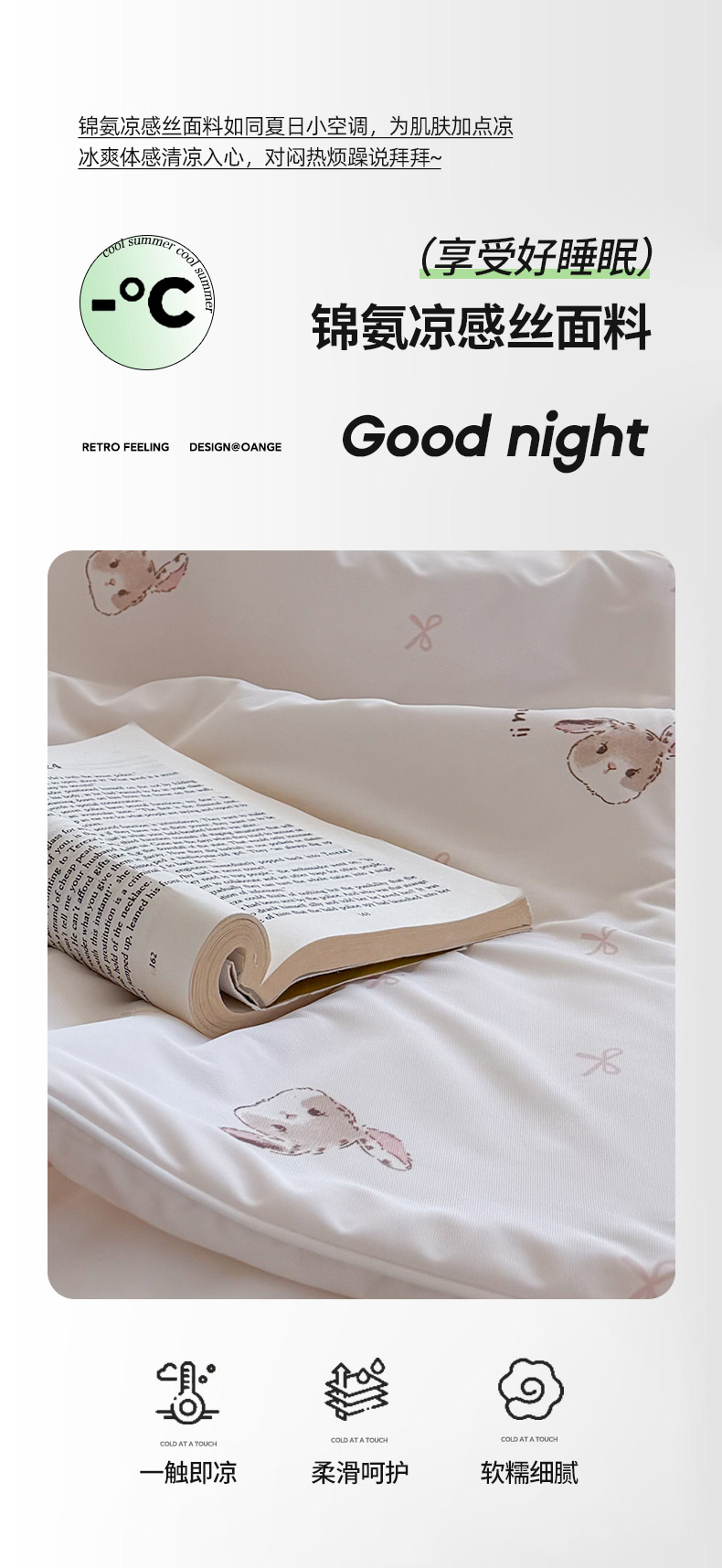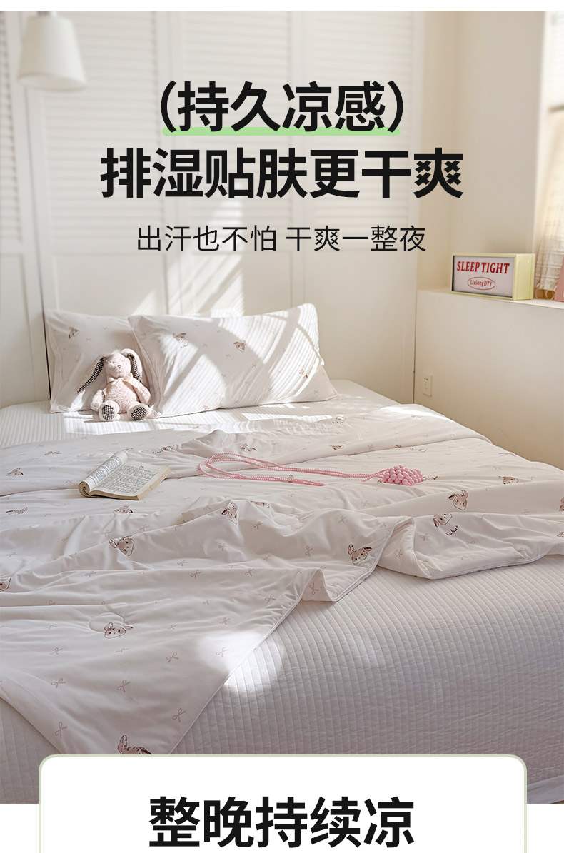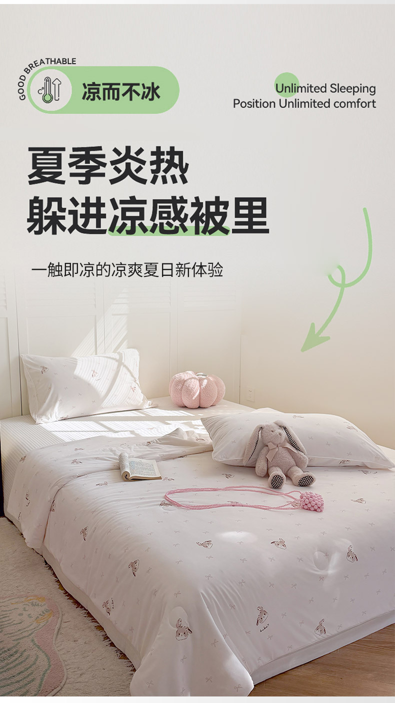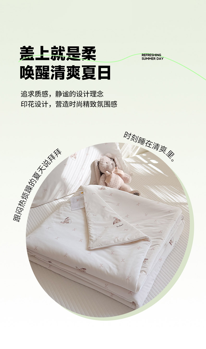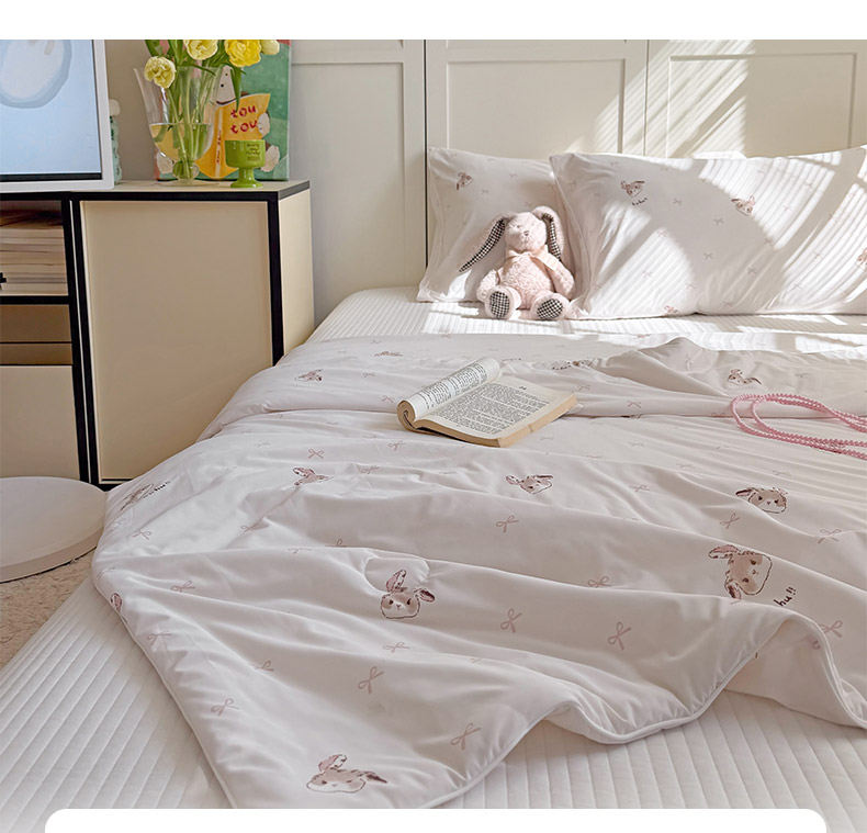 金梦拉家纺 2026春夏新款锦氨凉感丝印花系列夏被空调被夏凉被 小粉兔