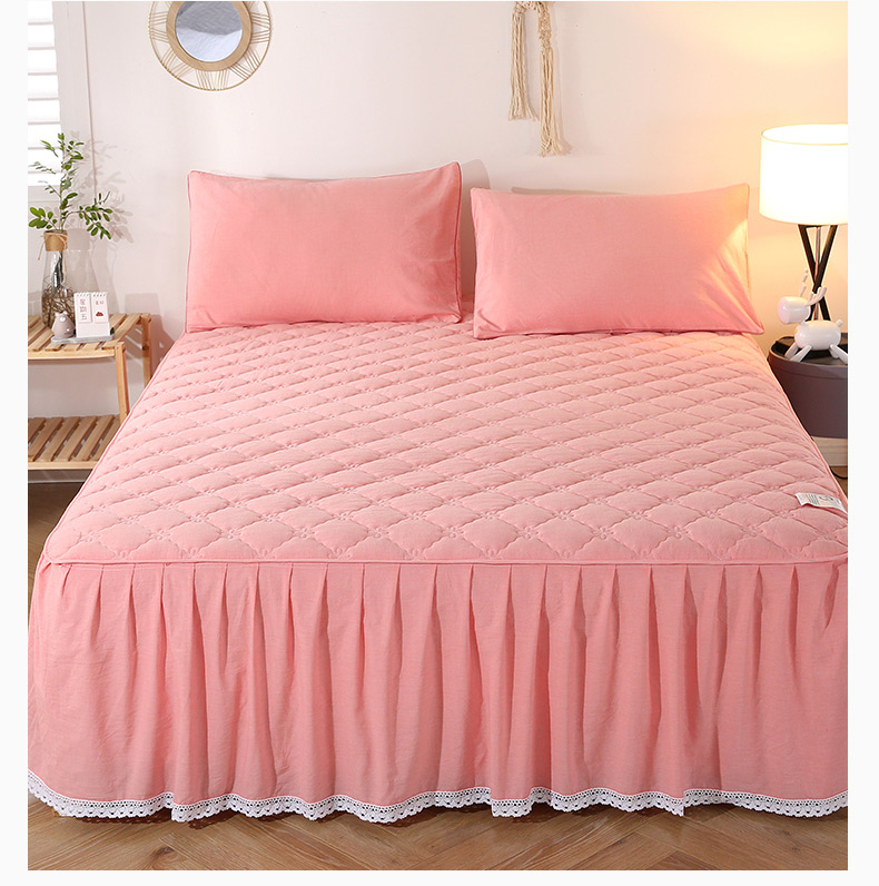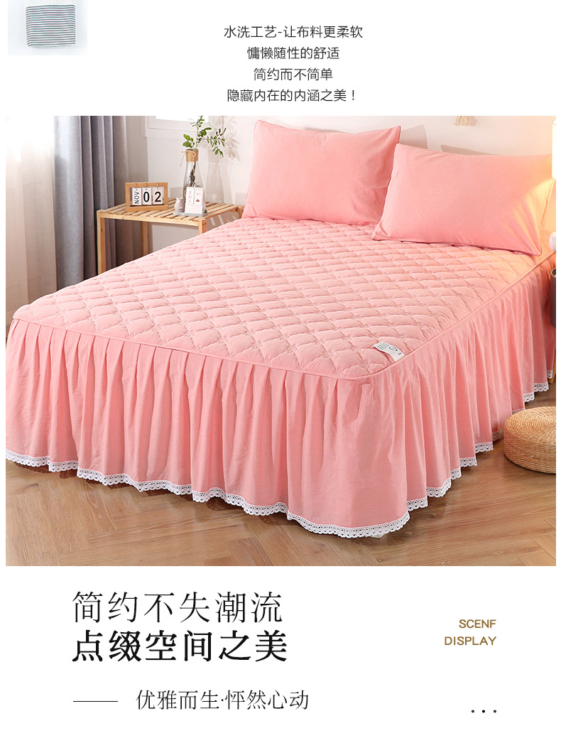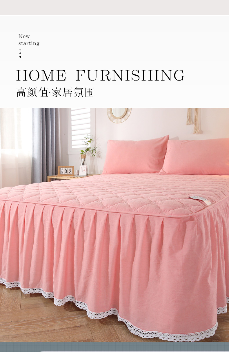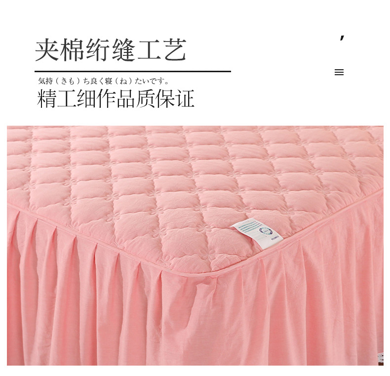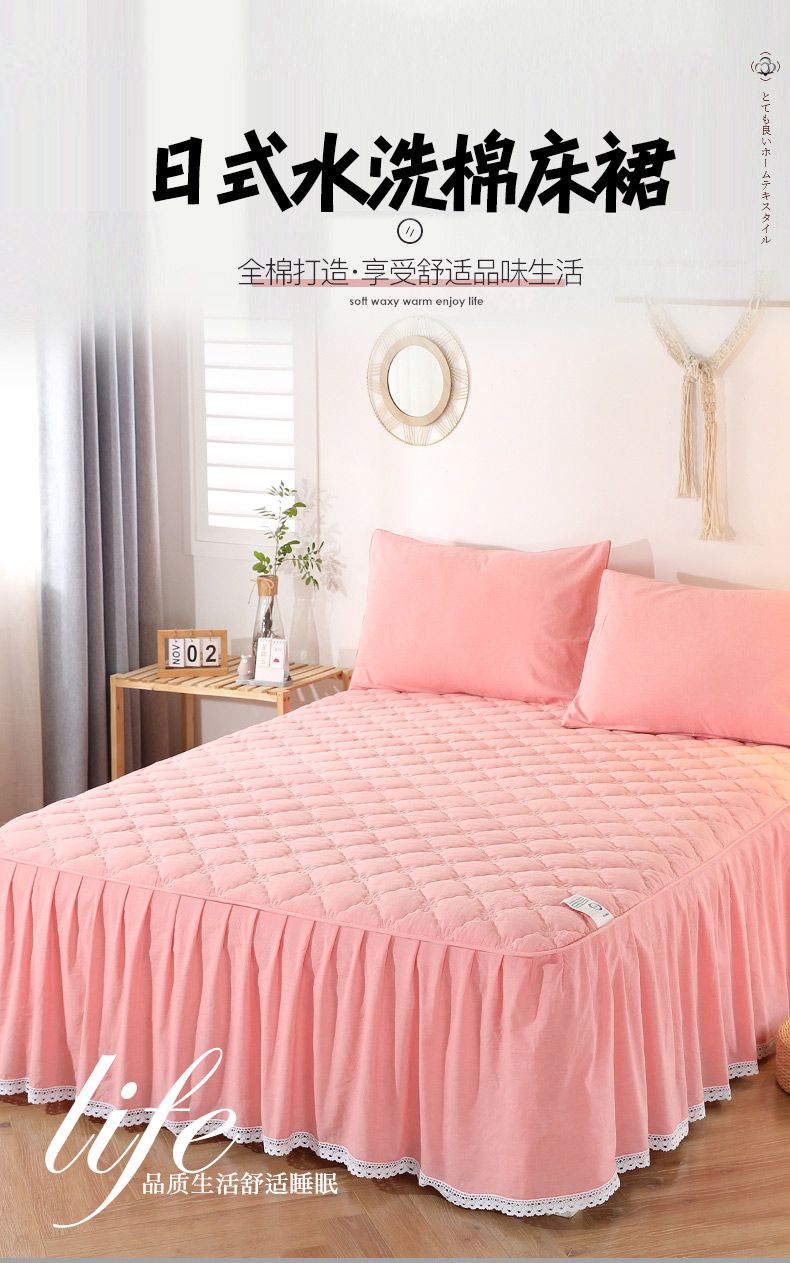 • 91家纺网 家纺一手货源 找家纺 欧妮家纺 2026新款全棉色织水洗棉夹棉床裙 日式水洗棉夹棉床裙J-西瓜红