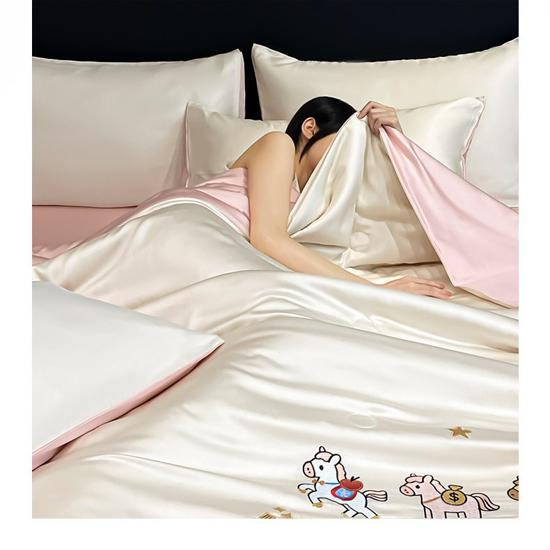 • 91家纺网 家纺一手货源 找家纺 利欧 2026新款水洗天丝刺绣夏被四件套-马上有钱 马上有钱-白粉