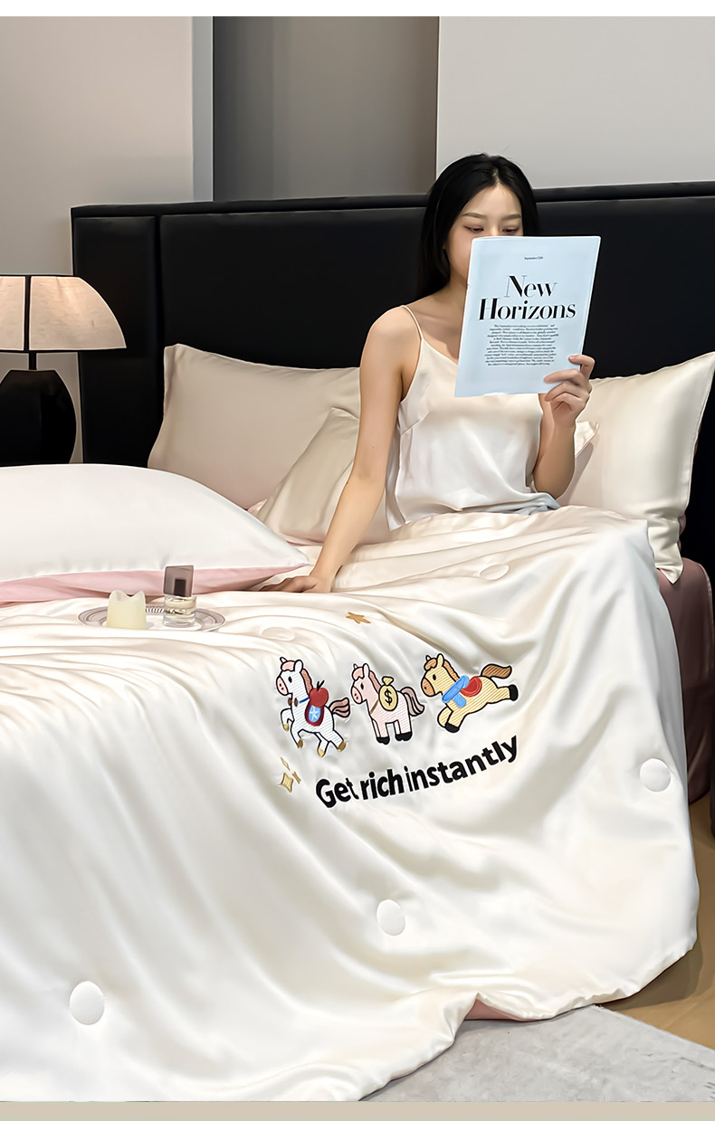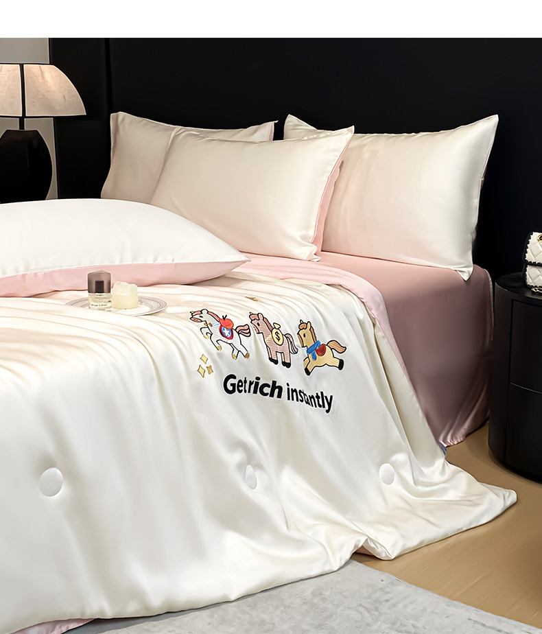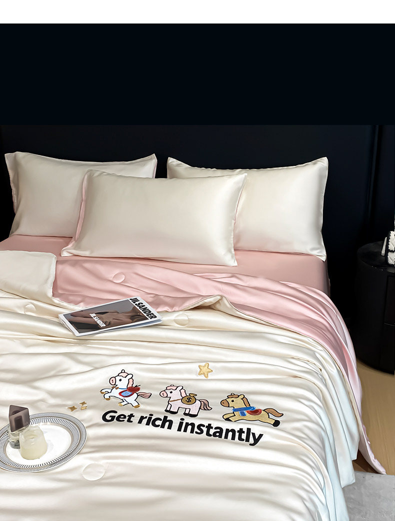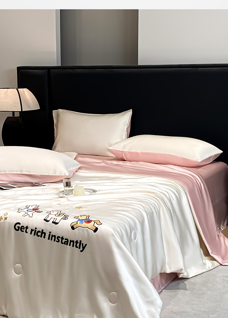 利欧 2026新款水洗天丝刺绣夏被四件套-马上有钱 马上有钱-白粉