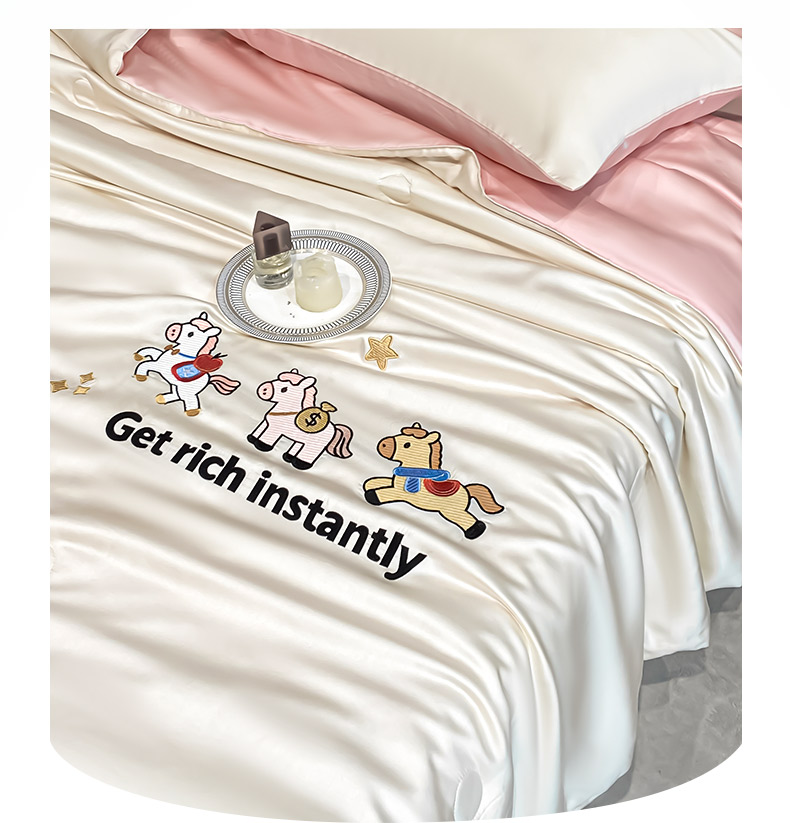 • 91家纺网 家纺一手货源 找家纺 利欧 2026新款水洗天丝刺绣夏被四件套-马上有钱 马上有钱-白粉 91家纺网 家纺一手货源 找家纺 利欧 2026新款水洗天丝刺绣夏被四件套-马上有钱 马上有钱-白粉