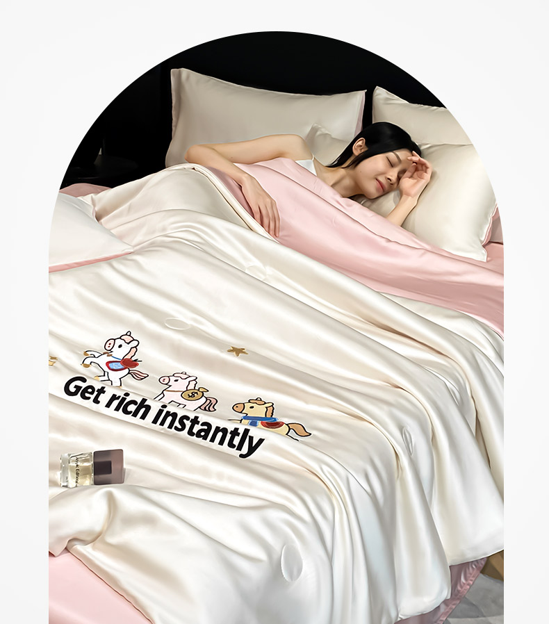 当前位置: 91家纺网 > 商品网购 > 被子 > 夏被 > 利欧 2026新款水洗天丝刺绣夏被四件套-马上有钱 马上有钱-白粉