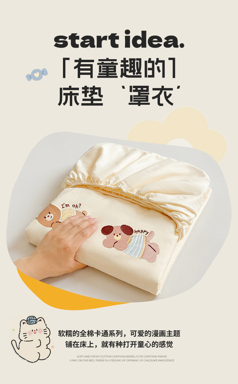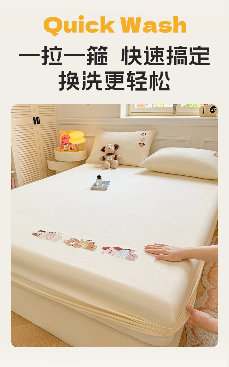(总)居眠 2025新款A类水洗棉印花夹棉床笠,爱心小熊,波点南瓜,搞怪派对,花园小熊,快乐小汪,萌宠小兔,奇幻兔兔,情系花兔,郁金香紫,字母小狗