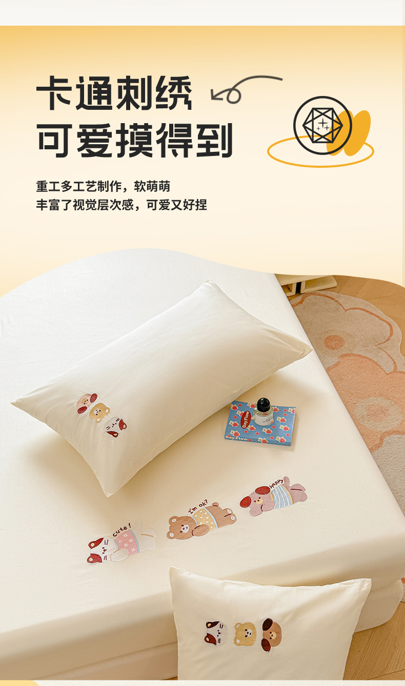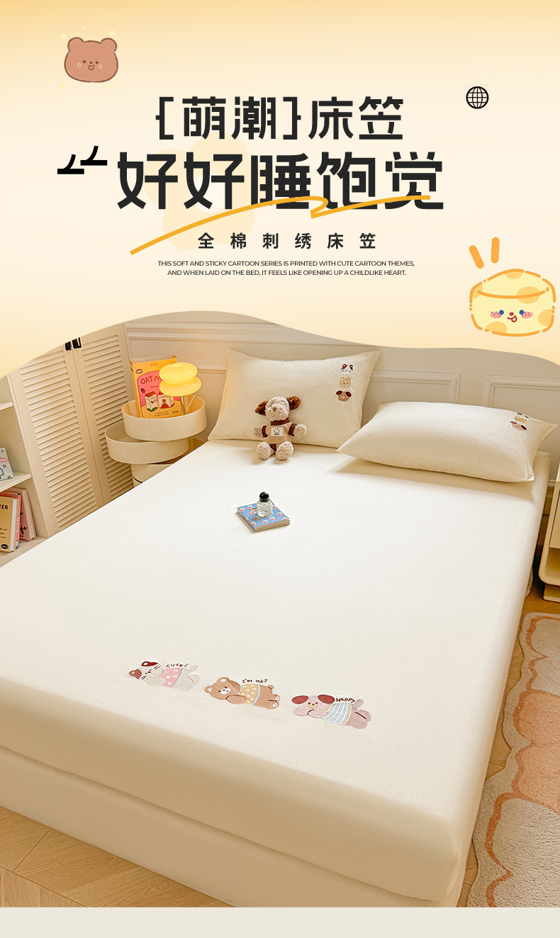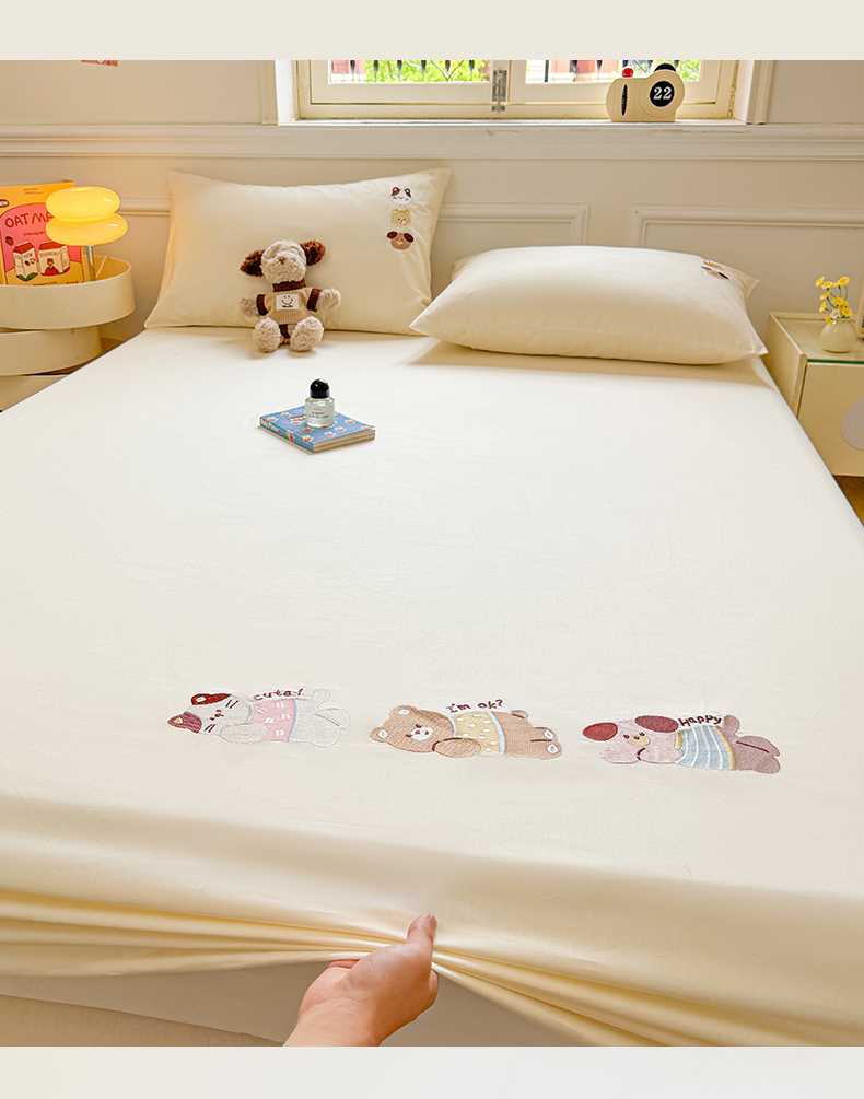 (总)居眠 2025新款A类母婴级卡通毛巾绣天丝床笠,假期小狗-天蓝,卡皮巴拉-水果绿,噗噗猫-肉粉,小树苗-奶昔白,小熊-姜黄