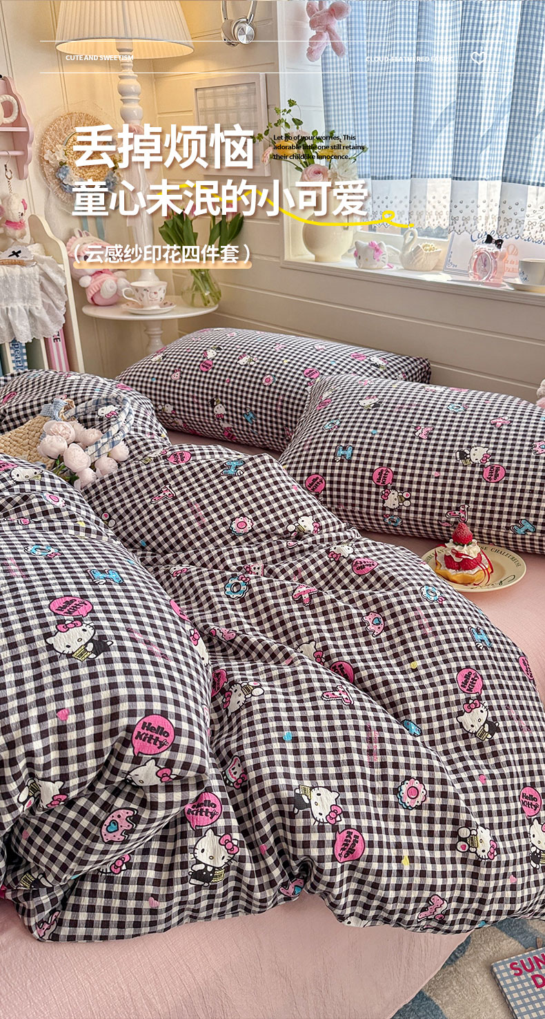 当前位置: 91家纺网 > 商品网购 > 床品套件 > 四件套 > 其它四件套 > 初念 2026新款云感纱印花四件套 棋盘粉KT