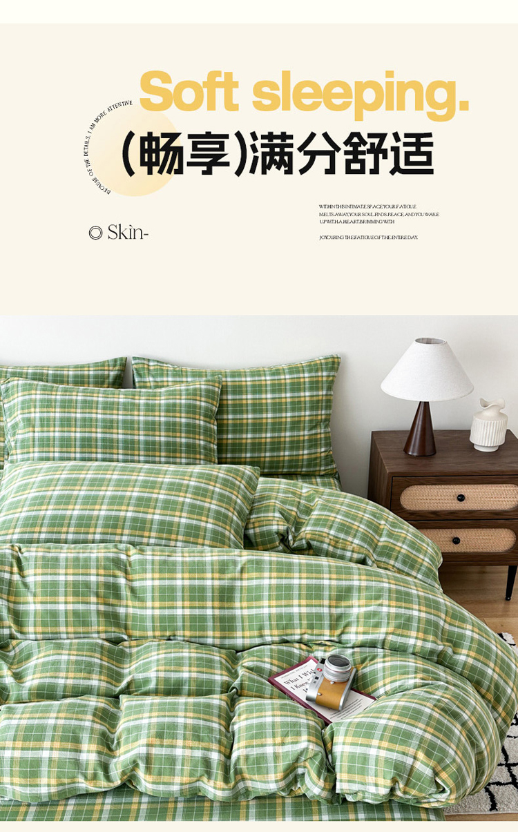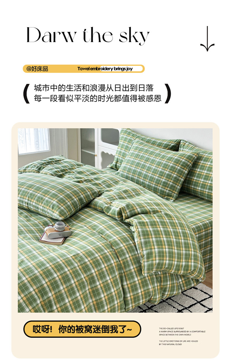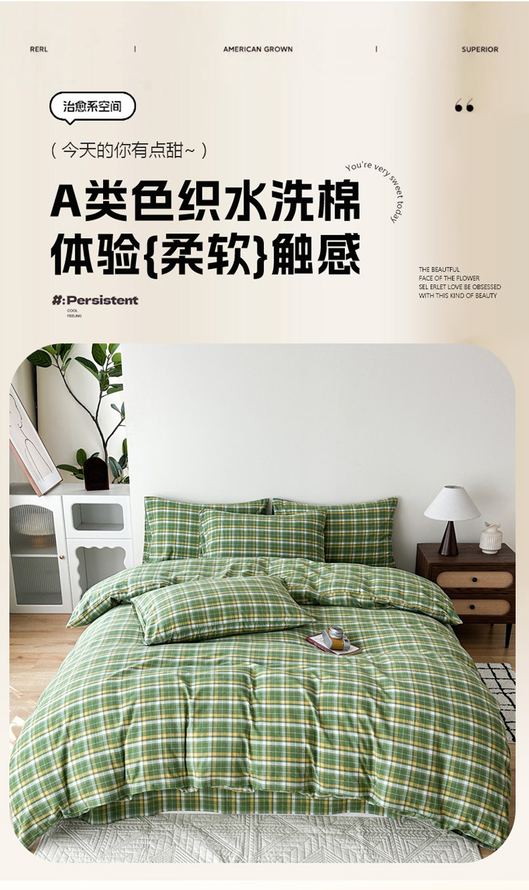 (总)蓝梦 2026新款全棉纯棉色织水洗棉简约四件套-大格,艾格绿,鹅黄,可可灰,蓝粉格,桃粉,优雅兰,宝利格