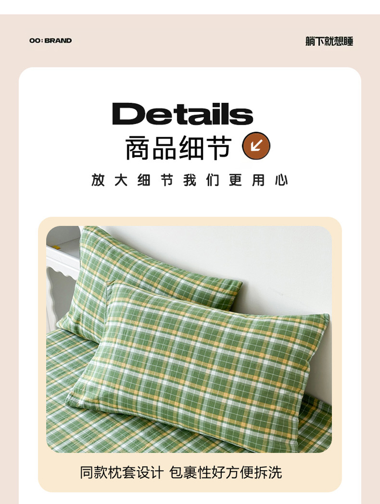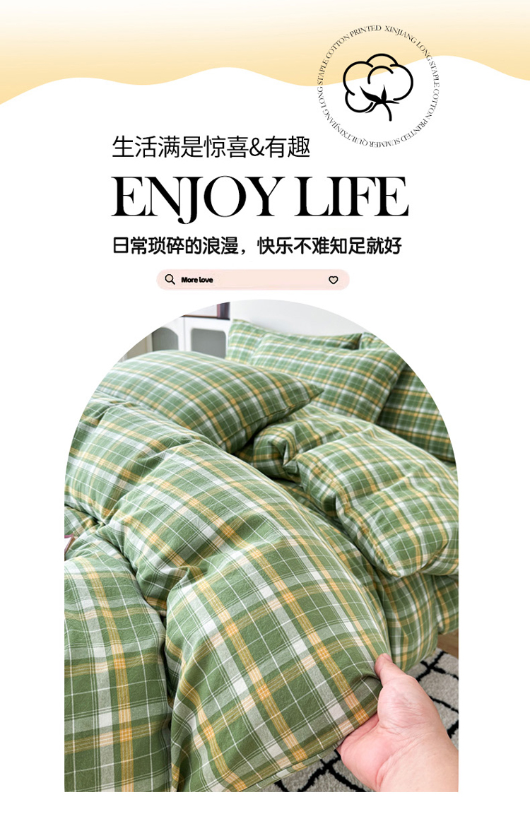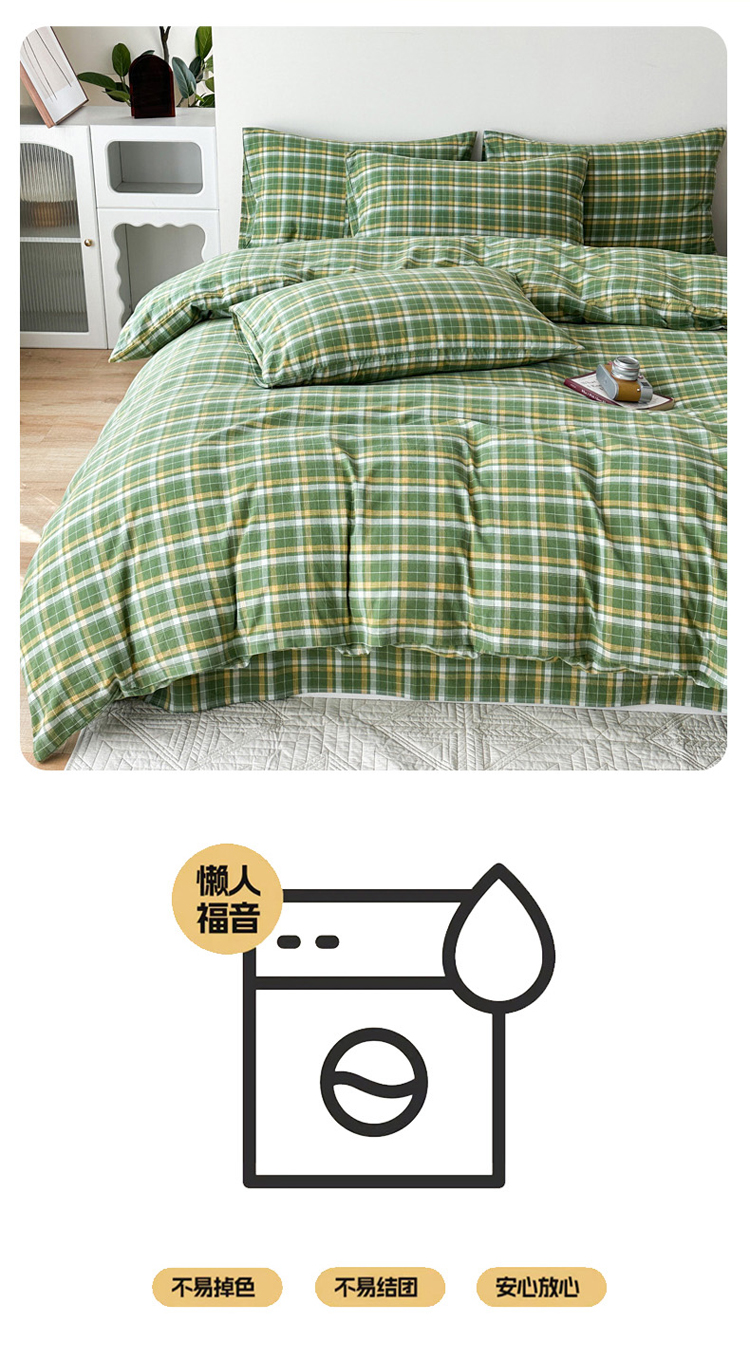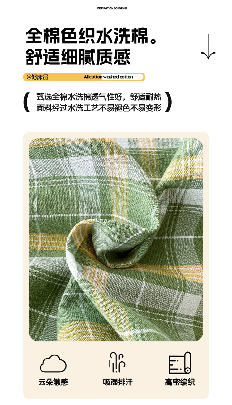 (总)蓝梦 2026新款全棉纯棉色织水洗棉简约四件套-大格,艾格绿,鹅黄,可可灰,蓝粉格,桃粉,优雅兰,宝利格