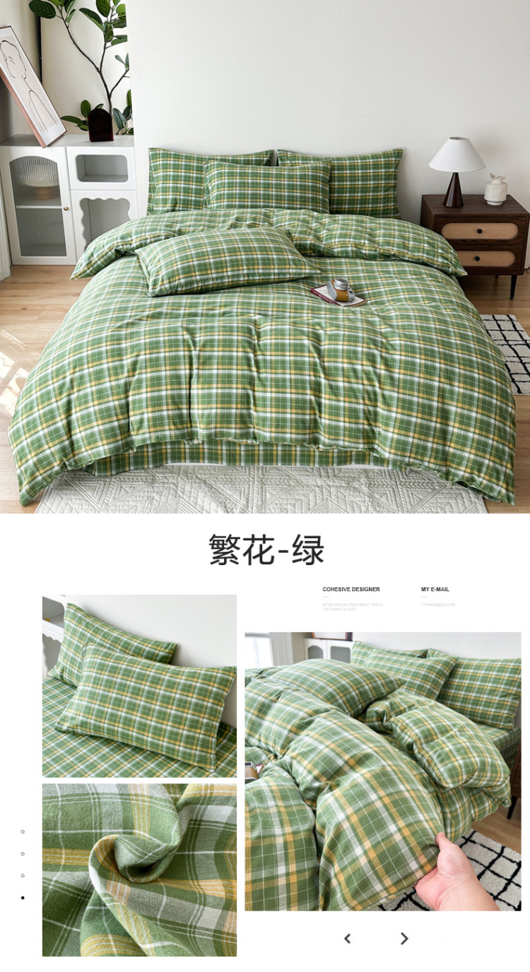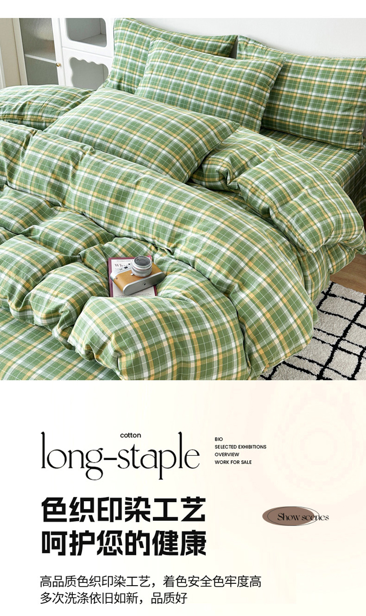 • 91家纺网 家纺一手货源 找家纺 (总)蓝梦 2026新款全棉纯棉色织水洗棉简约四件套-大格,艾格绿,鹅黄,可可灰,蓝粉格,桃粉,优雅兰,宝利格