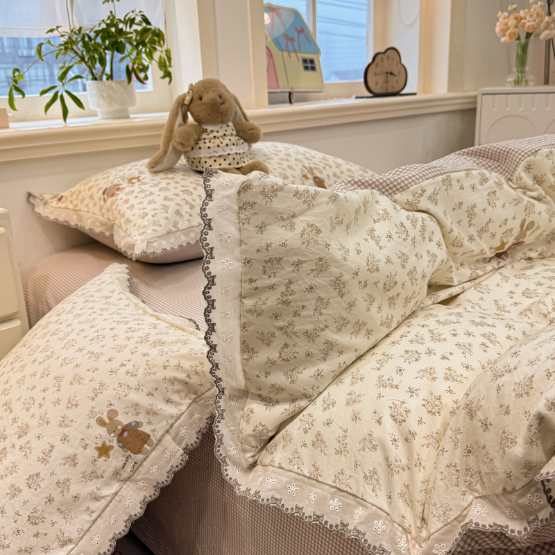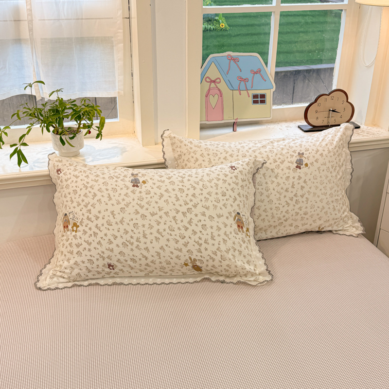 (总)漫仙阁家纺 2025新品云朵棉可爱风卡通烫画单床笠枕套三件套,小浣熊,邻家女孩,小青蛙,兔小姐,花仙子,狗狗家族