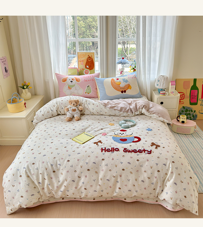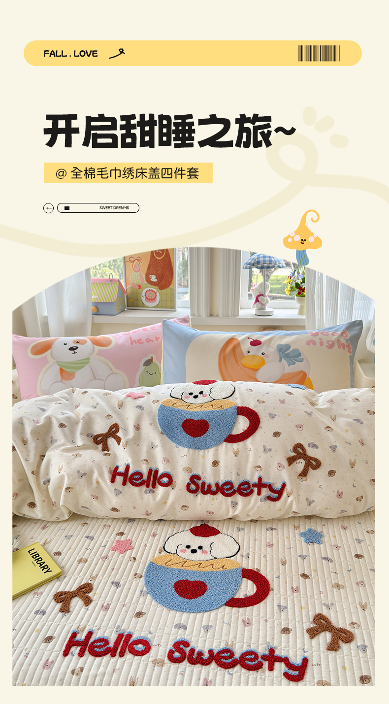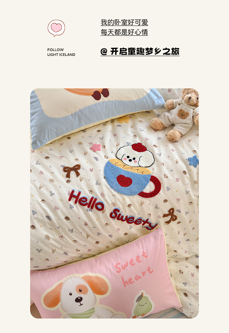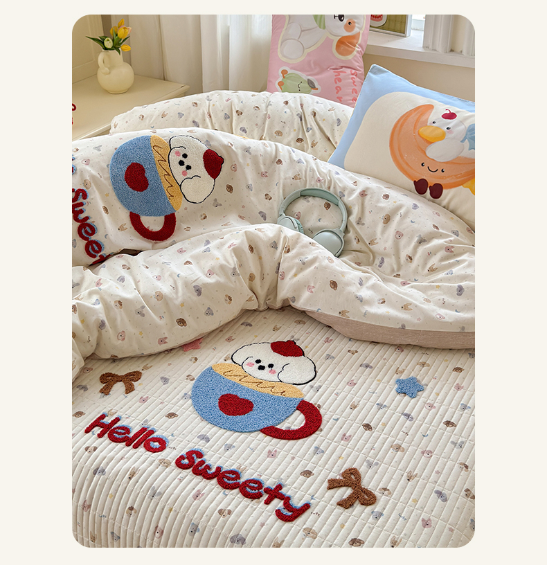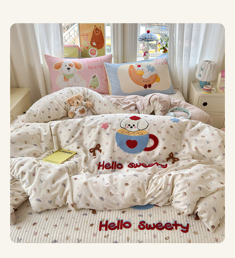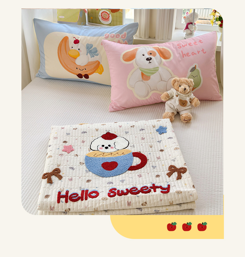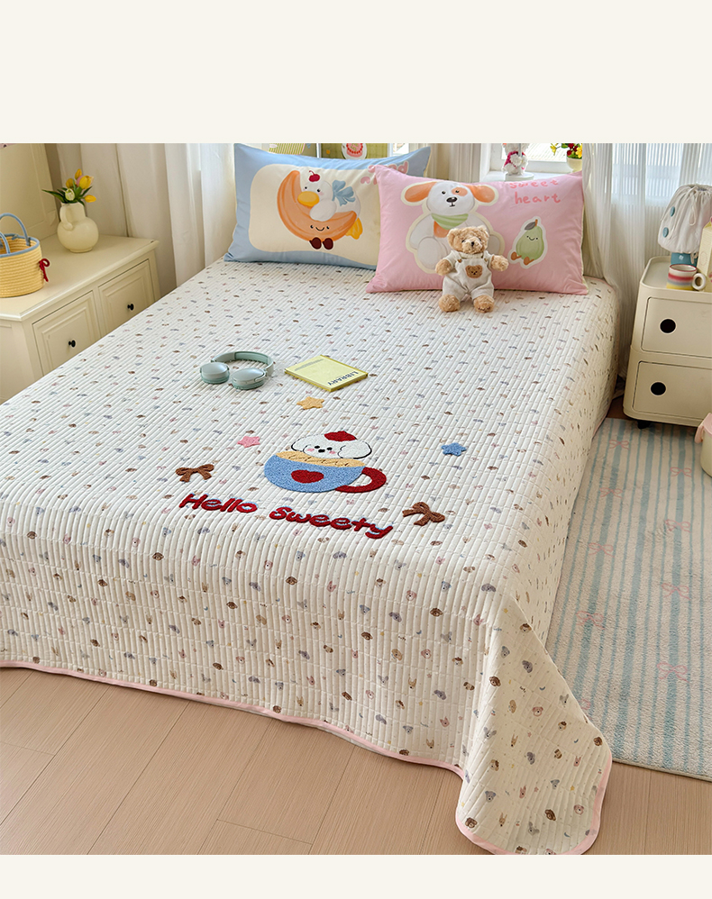 当前位置: 91家纺网 > 商品网购 > 床品套件 > 四件套 > 其它四件套 > 妮可 2026新款全棉毛巾绣夹棉床盖四件套搭配大版数码印花枕套 甜甜修狗