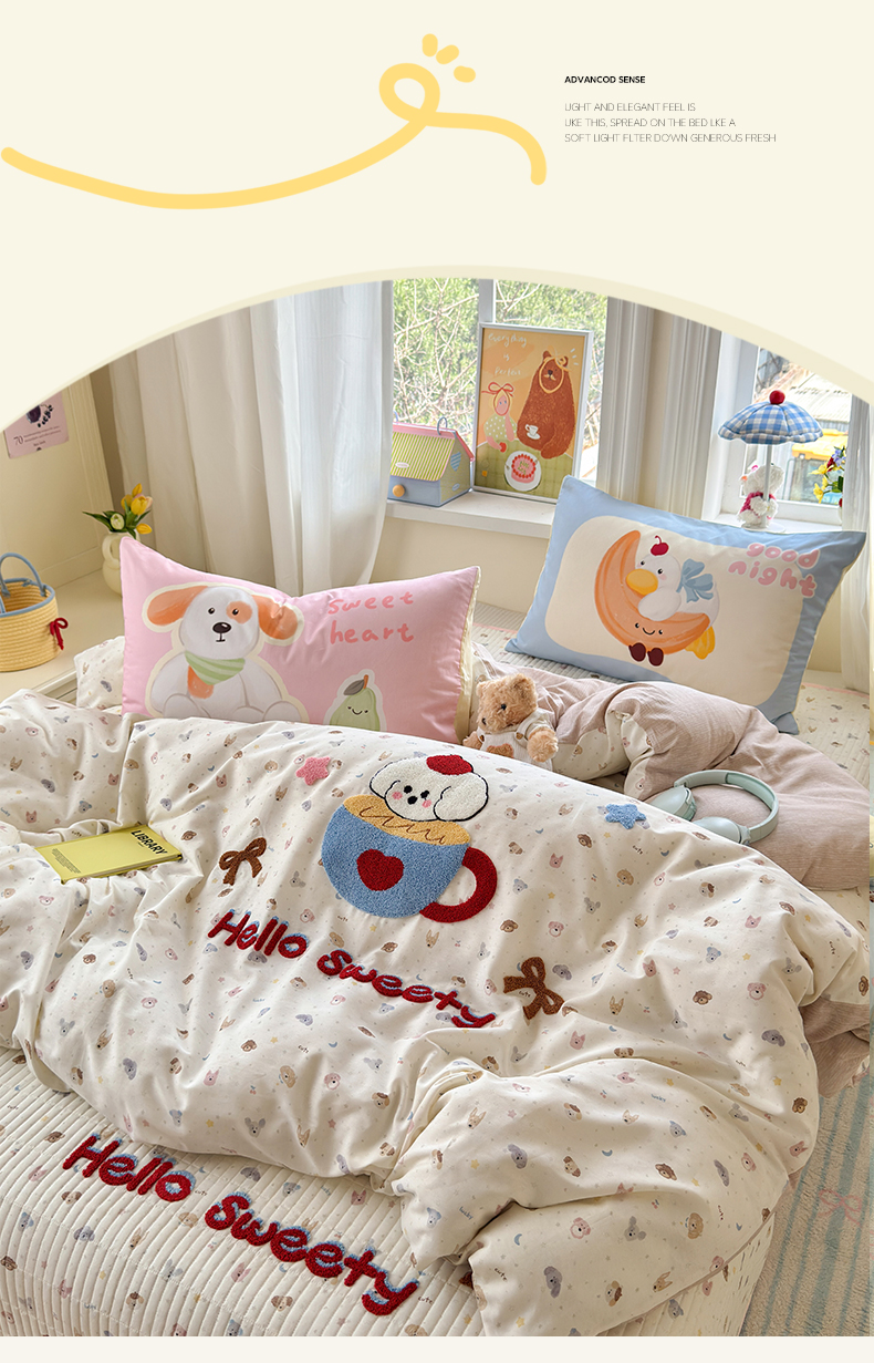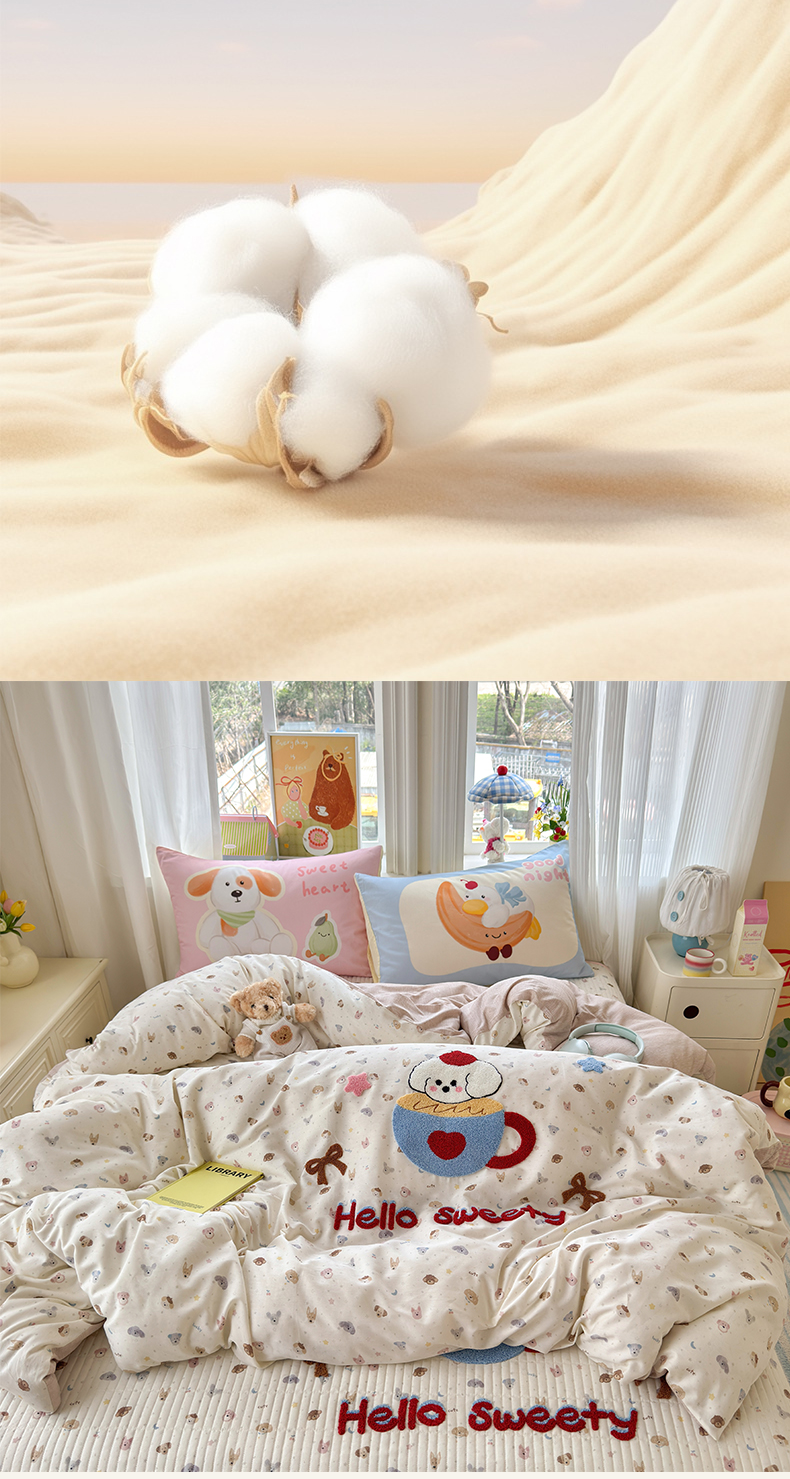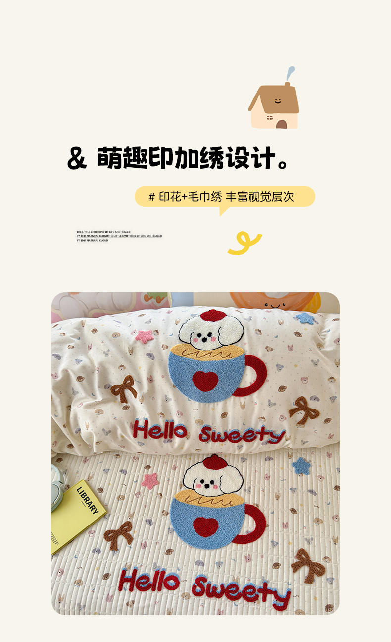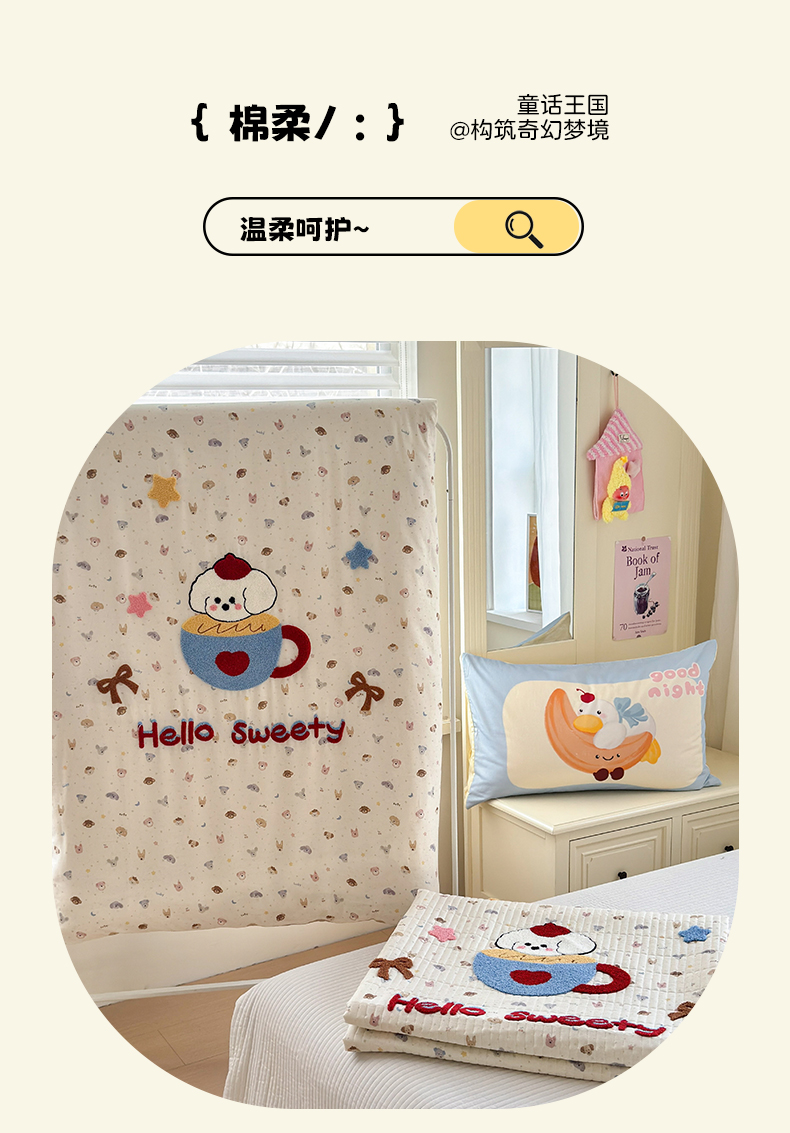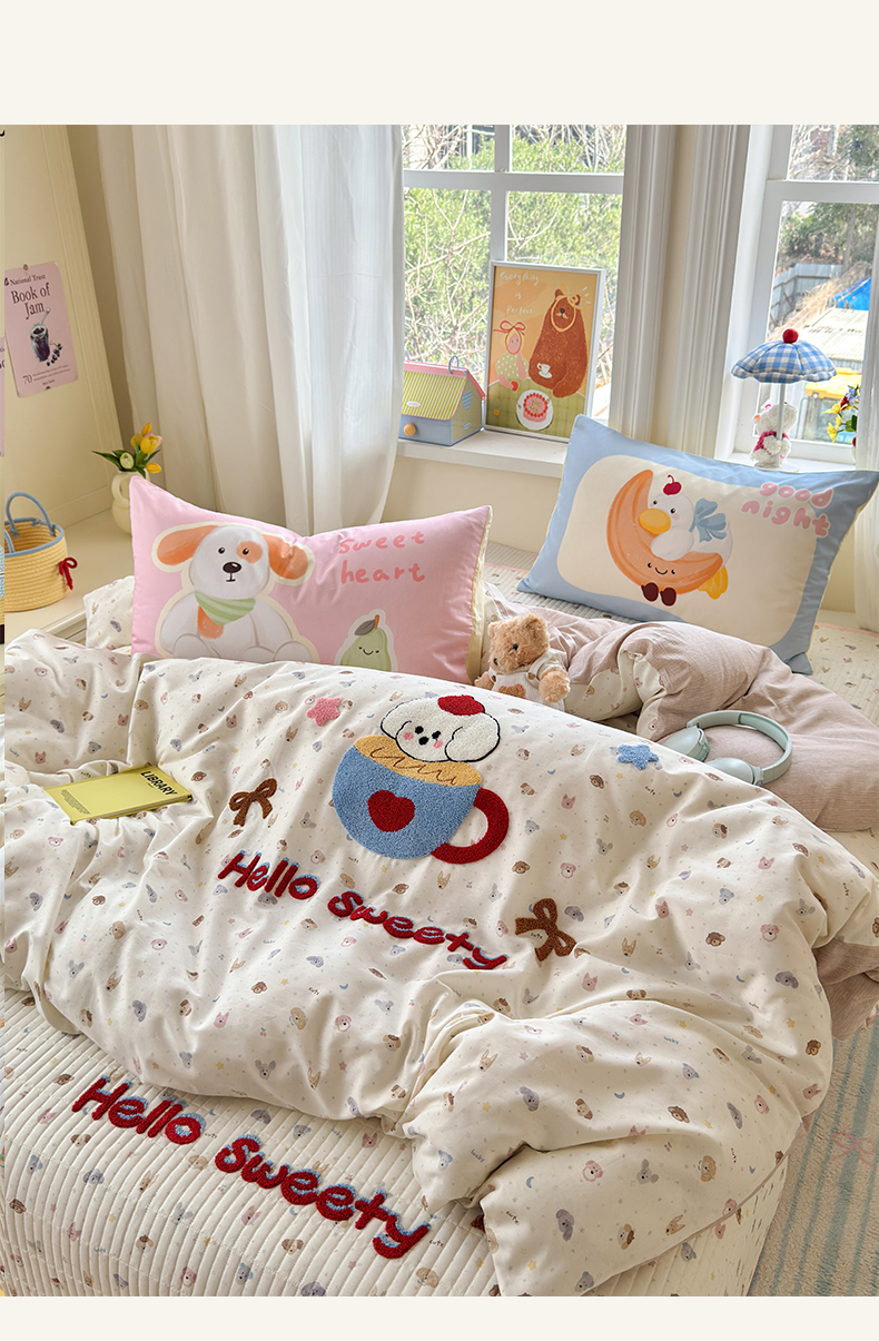 当前位置: 91家纺网 > 商品网购 > 床品套件 > 四件套 > 其它四件套 > 妮可 2026新款全棉毛巾绣夹棉床盖四件套搭配大版数码印花枕套 甜甜修狗