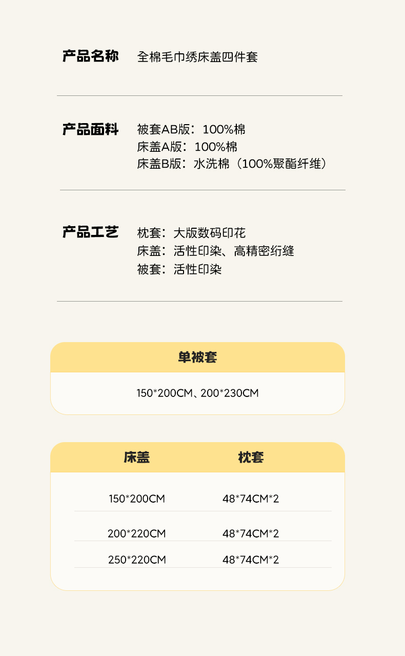 250x220cm床盖+2.0被套+枕套一对 | ¥196.00 |