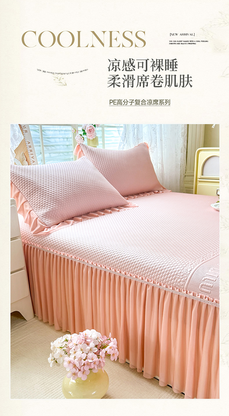 当前位置: 91家纺网 > 商品网购 > 床品套件 > 多件套 > 多件套 > (总)苏米娜家纺SUMINA 2026新款高克重泡泡席乙纶中分子冰豆豆蕾丝床裙夏季冰丝软席四件套-minmin