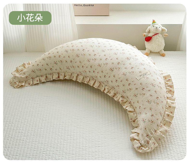 商品名称:蔻眠 升级款棉麻花边月亮长抱枕夹腿抱枕芯多功能月亮枕头 升级款-莫奈花园