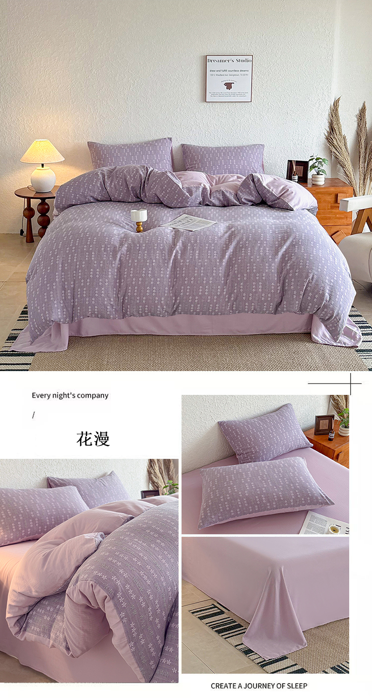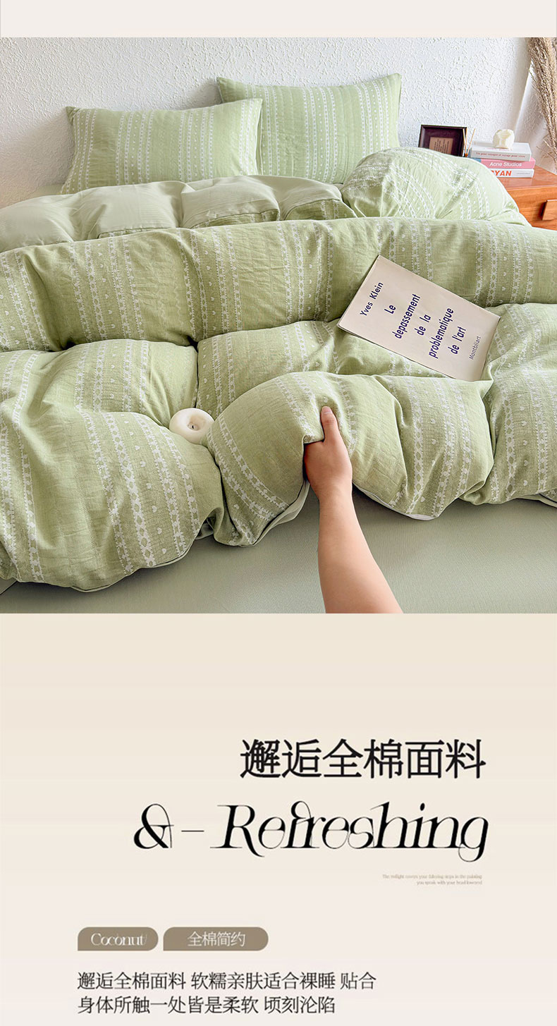(总)贝尔 2026新款全棉色织提花双层纱四件套