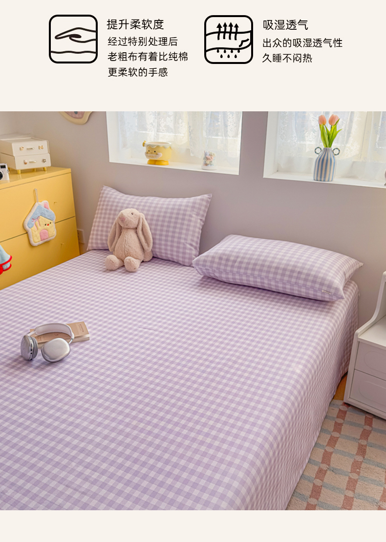 当前位置: 91家纺网 > 商品网购 > 床上用品 > 凉席 > 凉席套件 > 爱彼家纺 2026新款热卖系列老粗布床单床单三件套凉席 格子紫