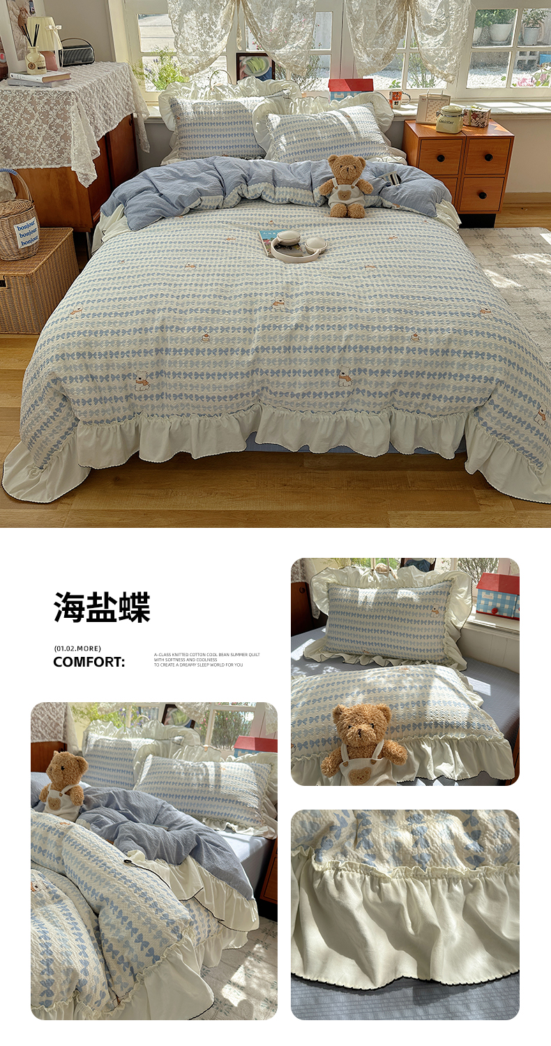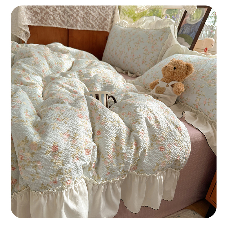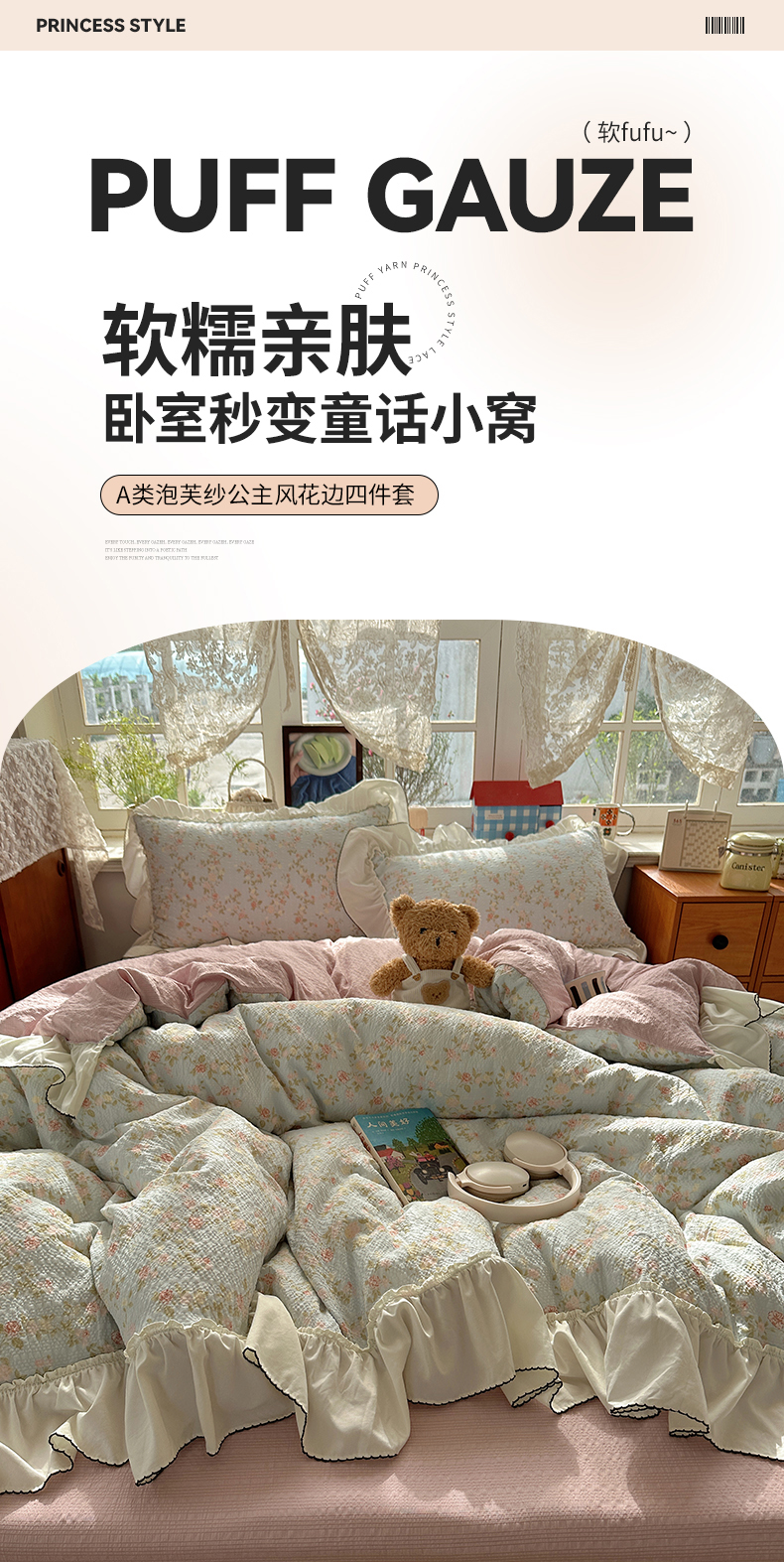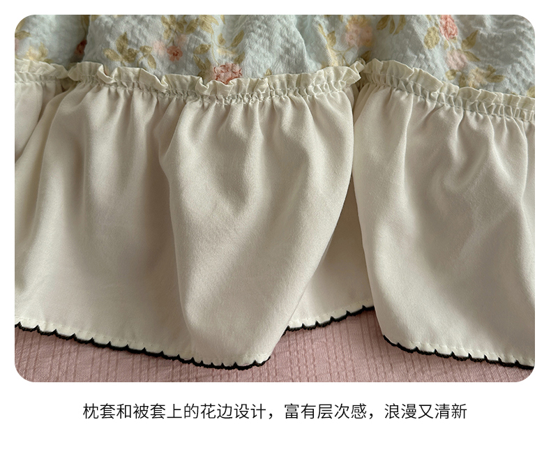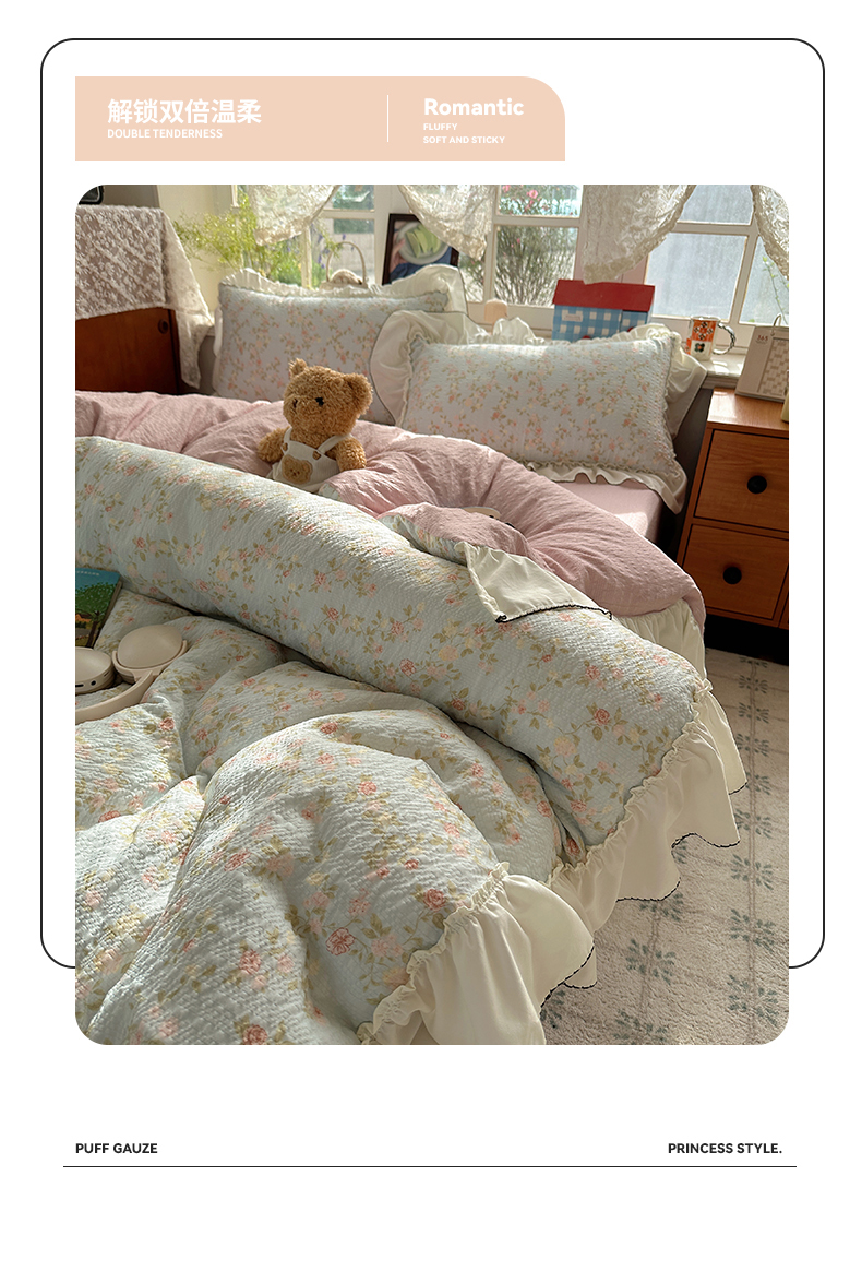 当前位置: 91家纺网 > 商品网购 > 床品套件 > 四件套 > 化纤普通四件套 > 凯洛奇 2026新款公主风云感泡芙纱花边款四件套 浅蓝花