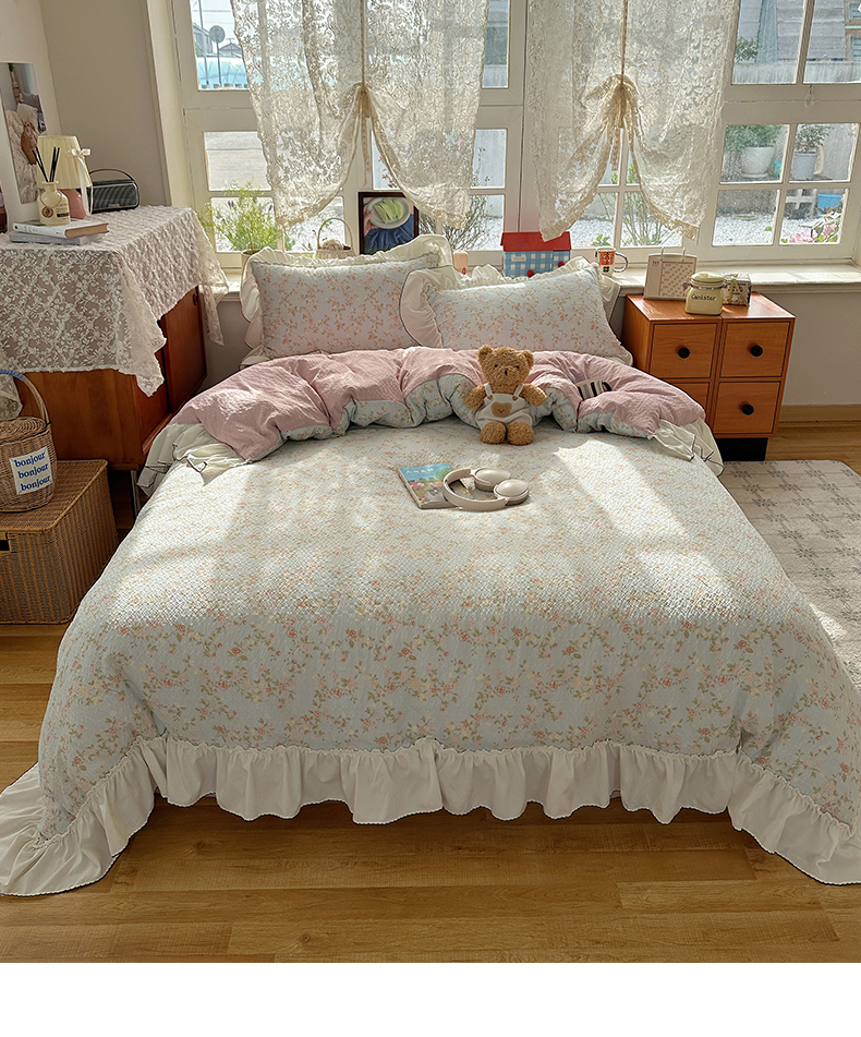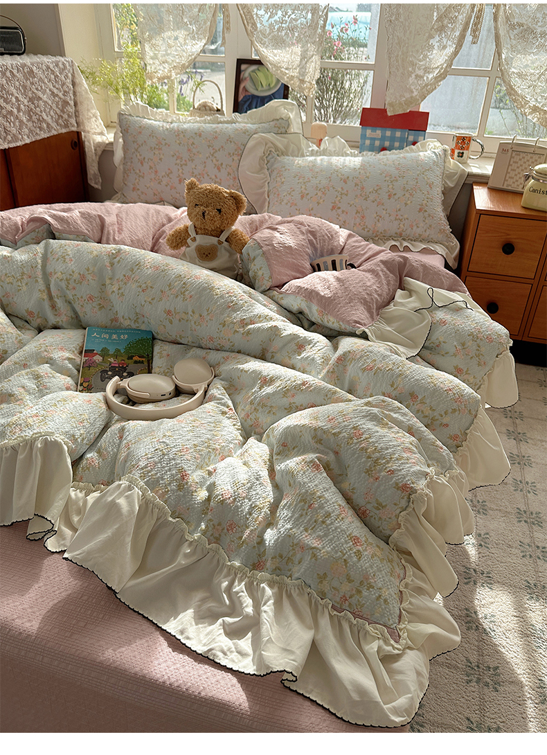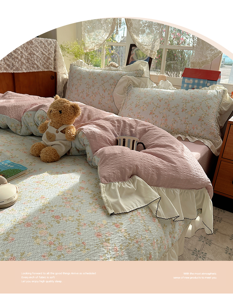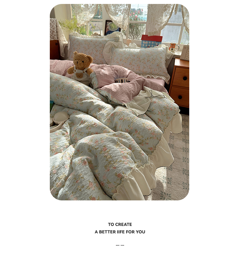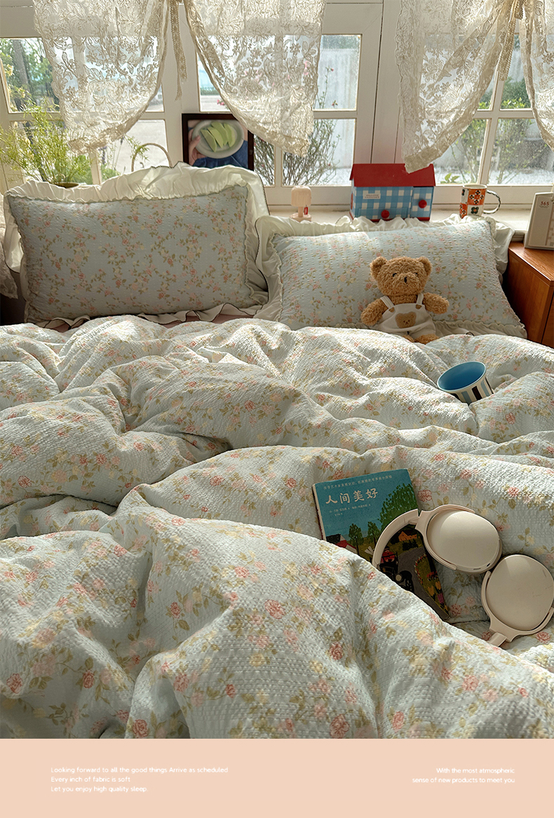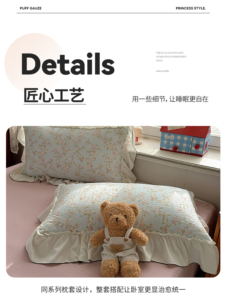 当前位置: 91家纺网 > 商品网购 > 床品套件 > 四件套 > 化纤普通四件套 > 凯洛奇 2026新款公主风云感泡芙纱花边款四件套 浅蓝花