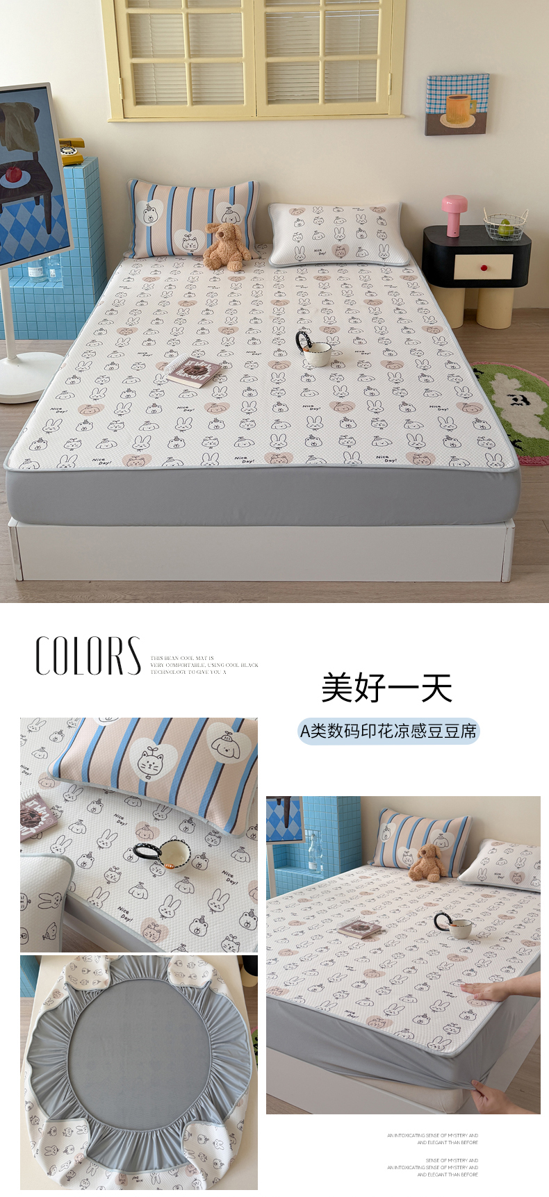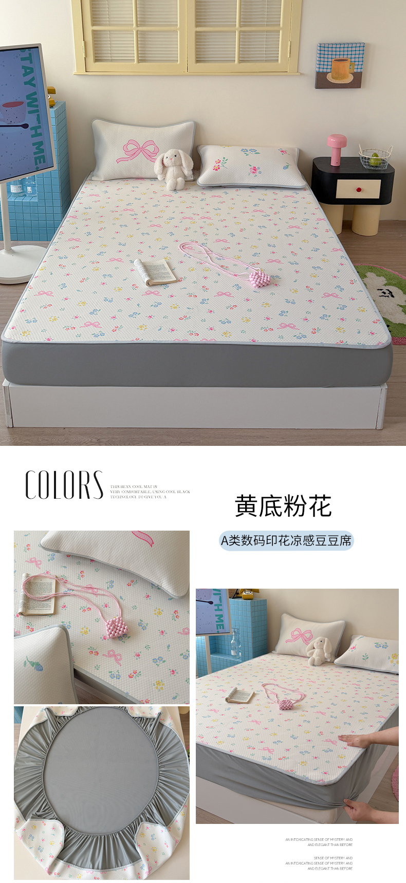 • 91家纺网 家纺一手货源 找家纺 Sweet dreams甜梦 2026新款A类数码印花凉感豆豆床笠款凉席--小版 甜梦时光