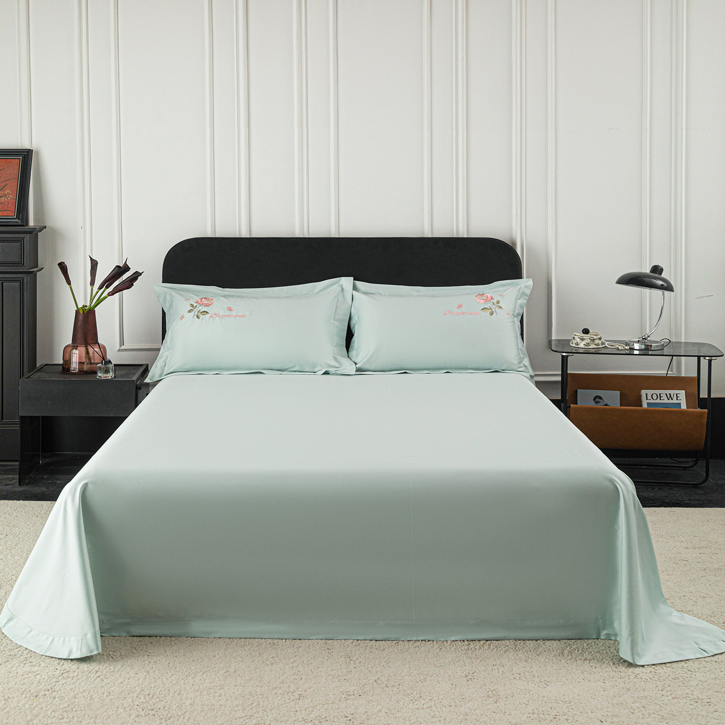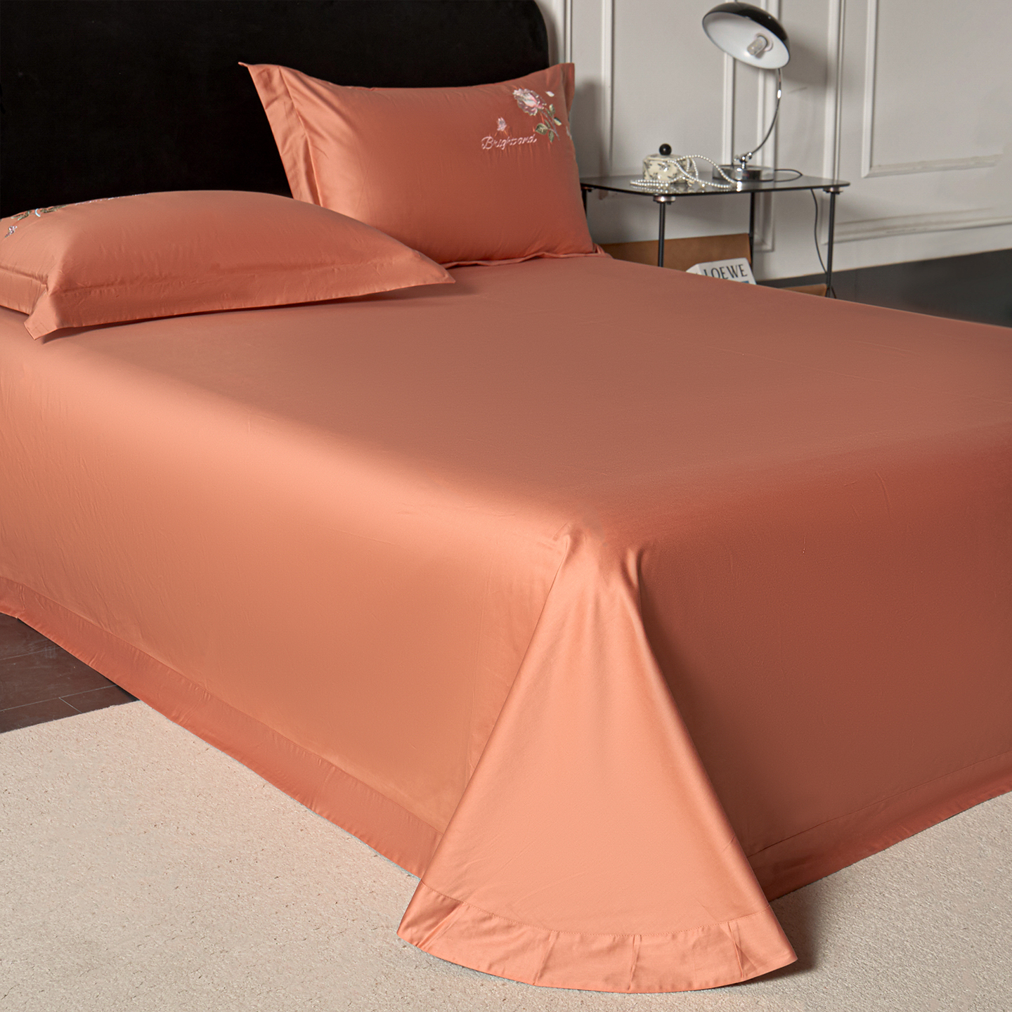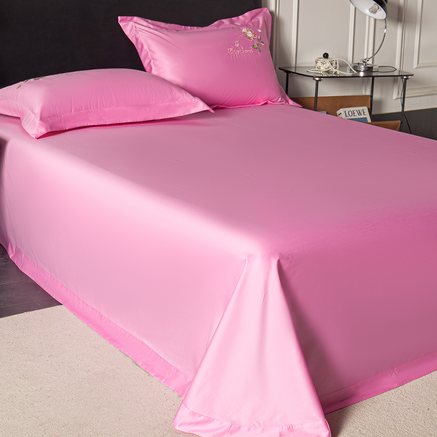 • 91家纺网 家纺一手货源 找家纺 (总)莉迪娅 2026新款50s双股长绒棉纯色简约绣花床单三件套--玫瑰恋人系列,中国红,樱红玉,魅惑紫,爱玛橙,粉豆沙,富贵灰,高级灰,海藻蓝,姜黄,经典咖,卡其,孔雀兰,抹茶绿,奶油黄,水银灰,水云绿,仙女粉,香槟金,香妃玉,香芋紫,珍珠白