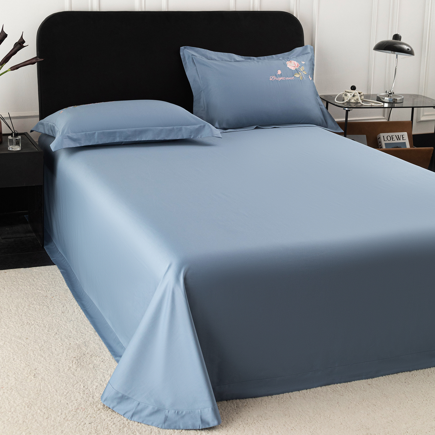 • 91家纺网 家纺一手货源 找家纺 (总)莉迪娅 2026新款50s双股长绒棉纯色简约绣花床单三件套--玫瑰恋人系列,中国红,樱红玉,魅惑紫,爱玛橙,粉豆沙,富贵灰,高级灰,海藻蓝,姜黄,经典咖,卡其,孔雀兰,抹茶绿,奶油黄,水银灰,水云绿,仙女粉,香槟金,香妃玉,香芋紫,珍珠白