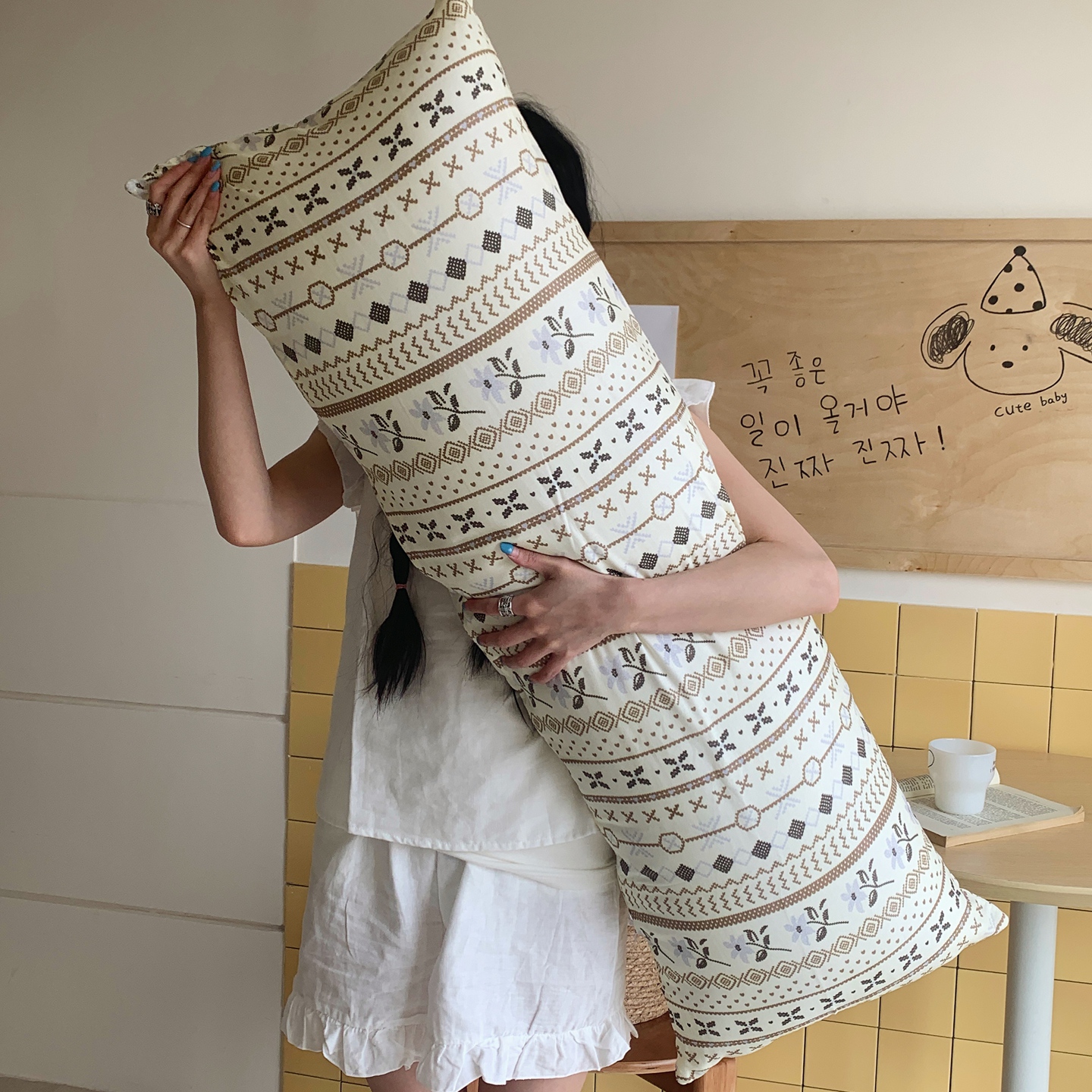 当前位置: 91家纺网 > 商品网购 > 居家日用 > 靠垫/抱枕 > 桃喜 2026新款全棉双层纱巨无霸长抱枕 双层纱长抱枕-费尔岛狗狗蓝