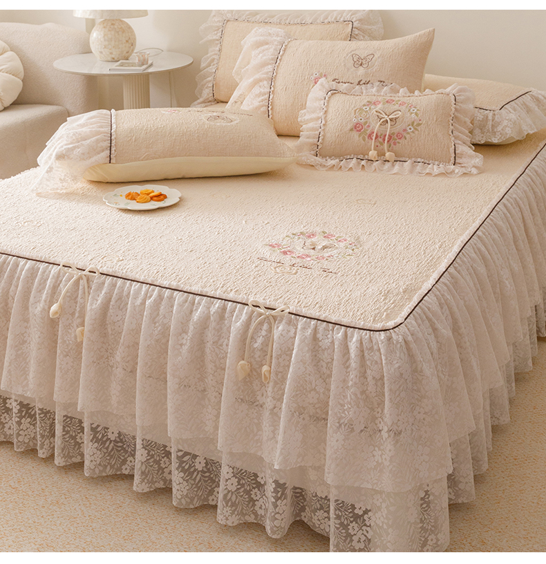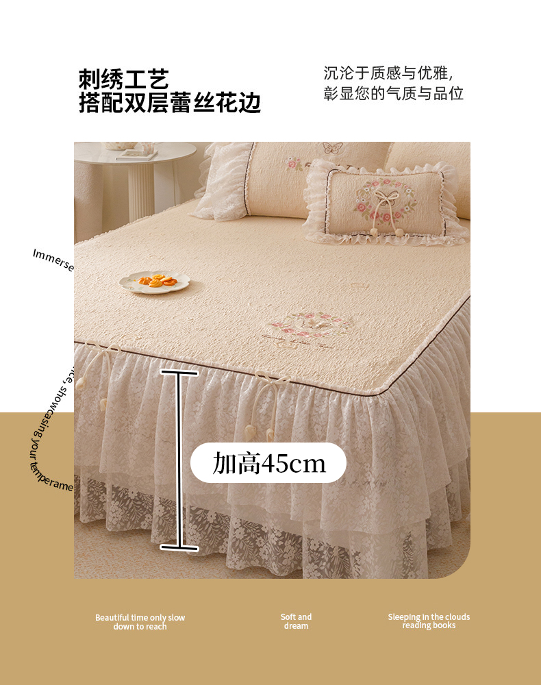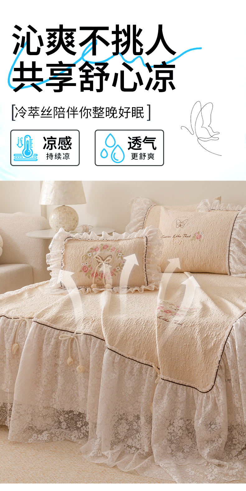 (总)好儿喜家纺 2024新款伊芙琳凉席床裙三件套,浅绿,橄榄绿,奶白,浅粉,浅蓝