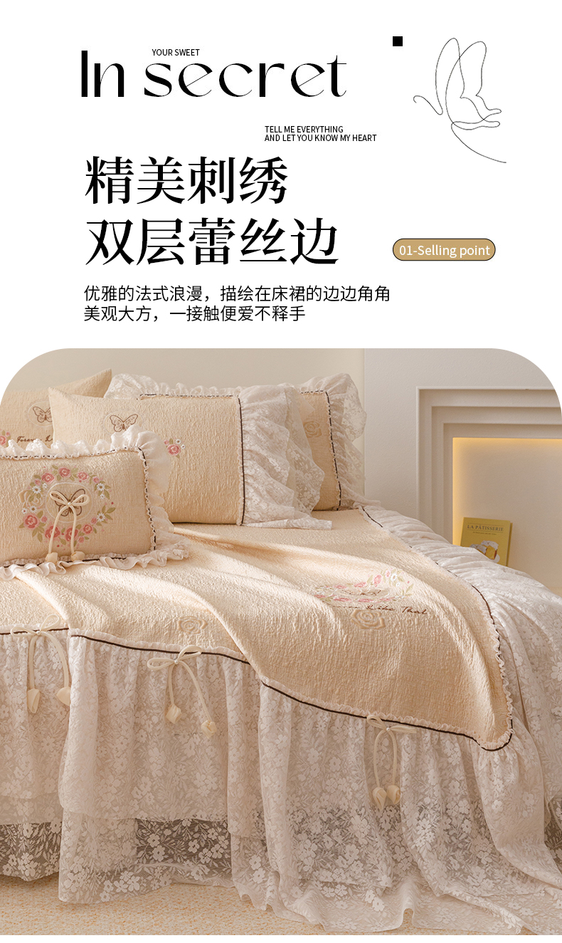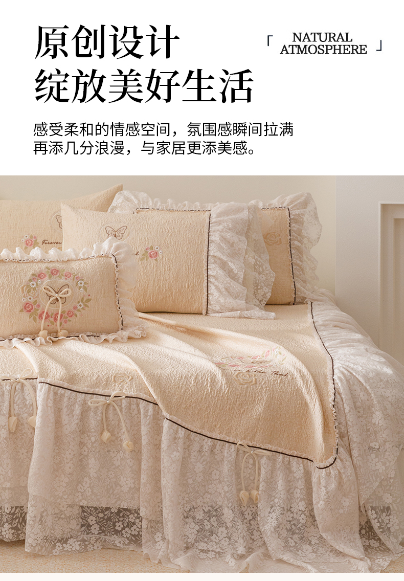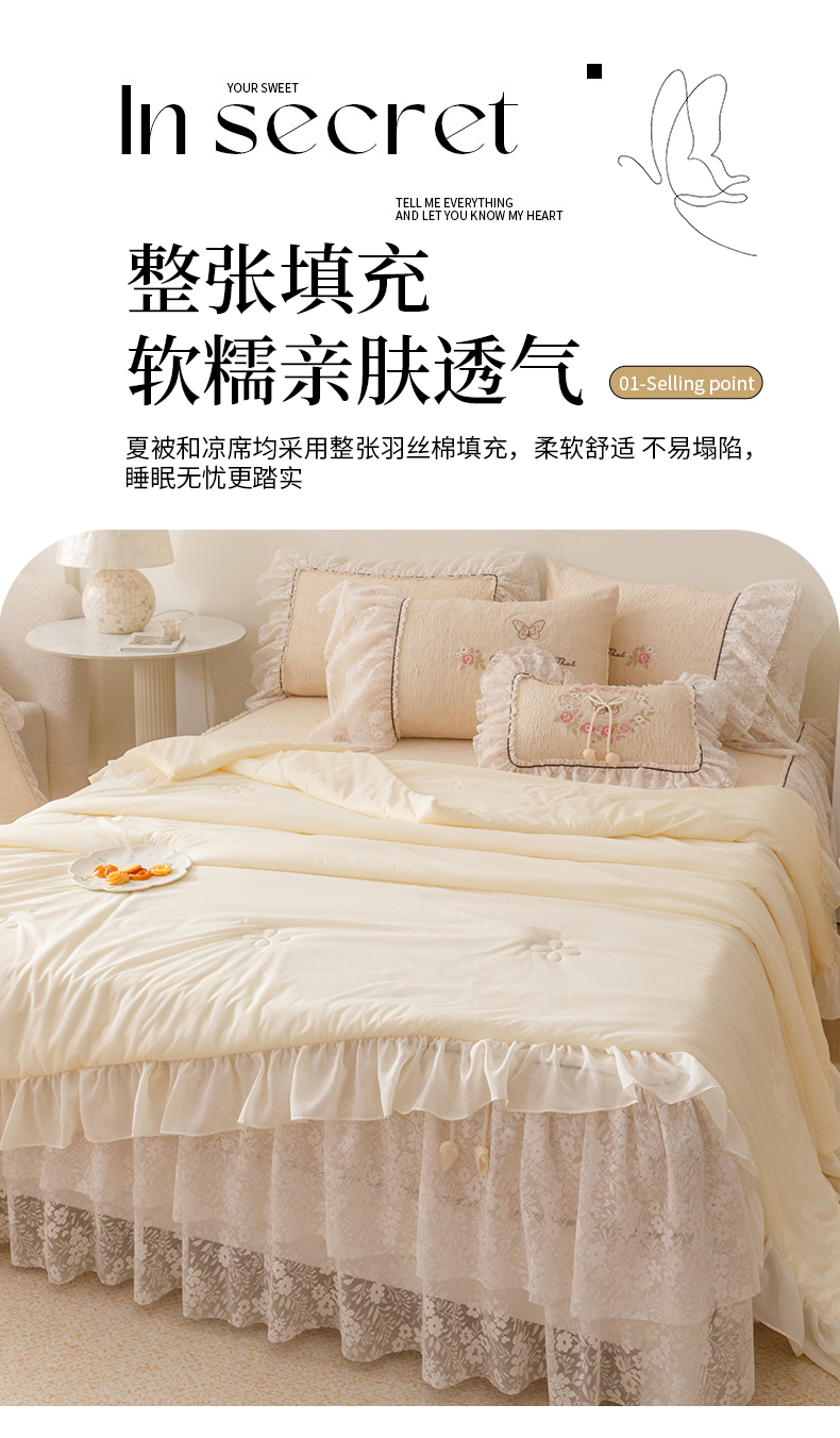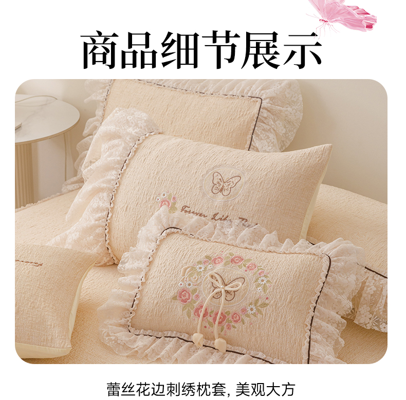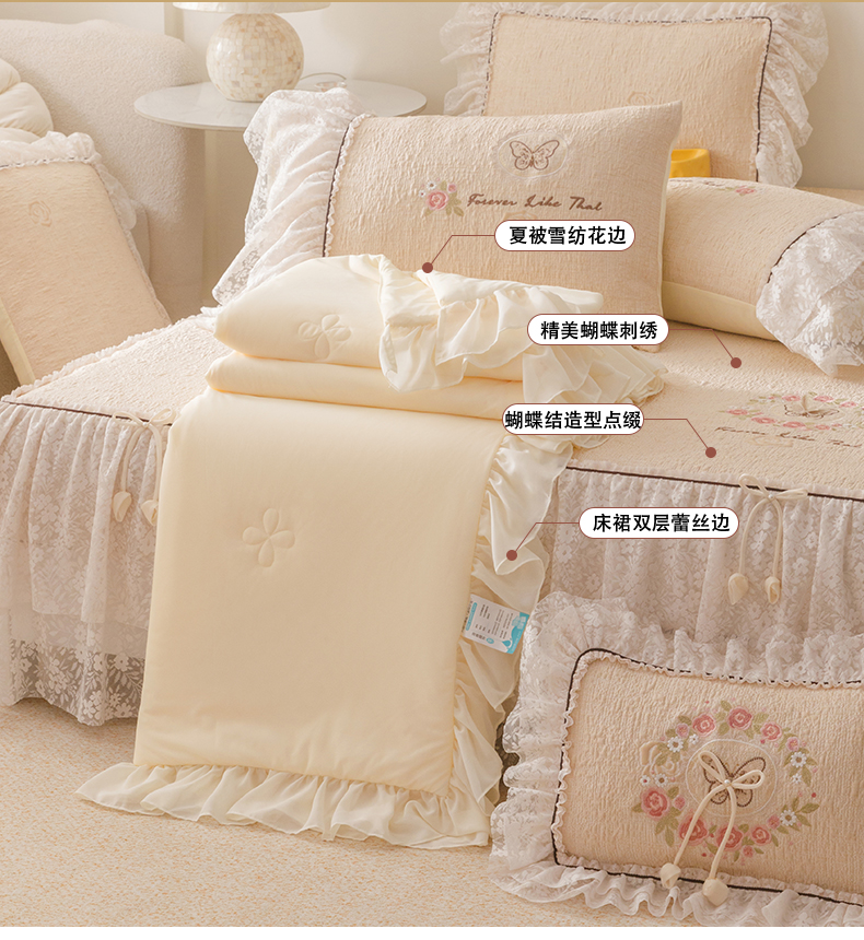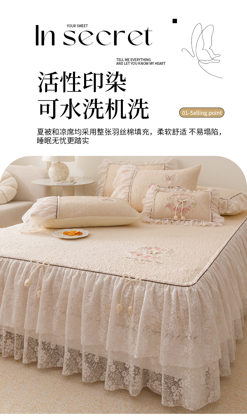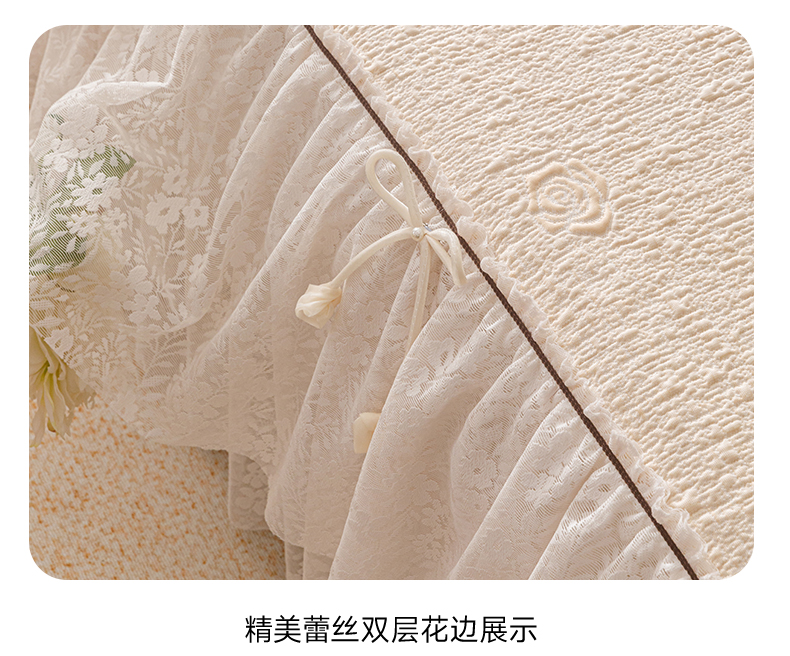 (总)好儿喜家纺 2024新款伊芙琳夏被凉席床裙四件套,浅绿,橄榄绿,奶白,浅粉,浅蓝