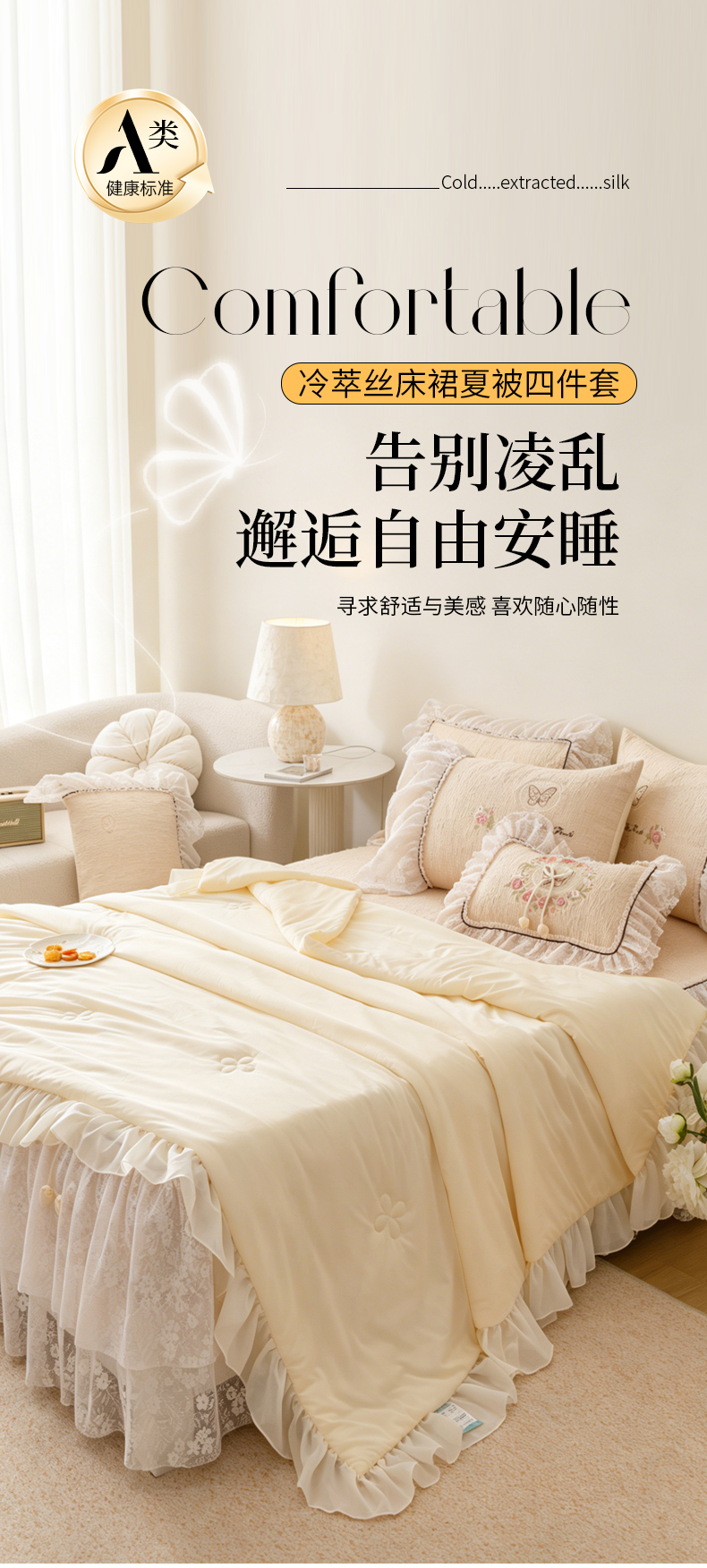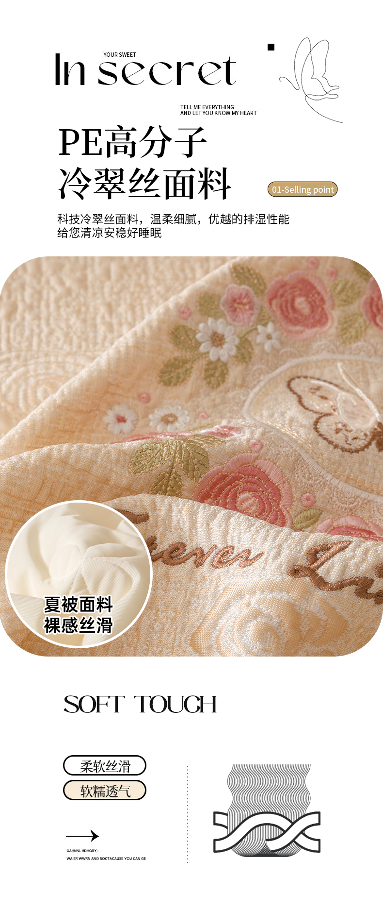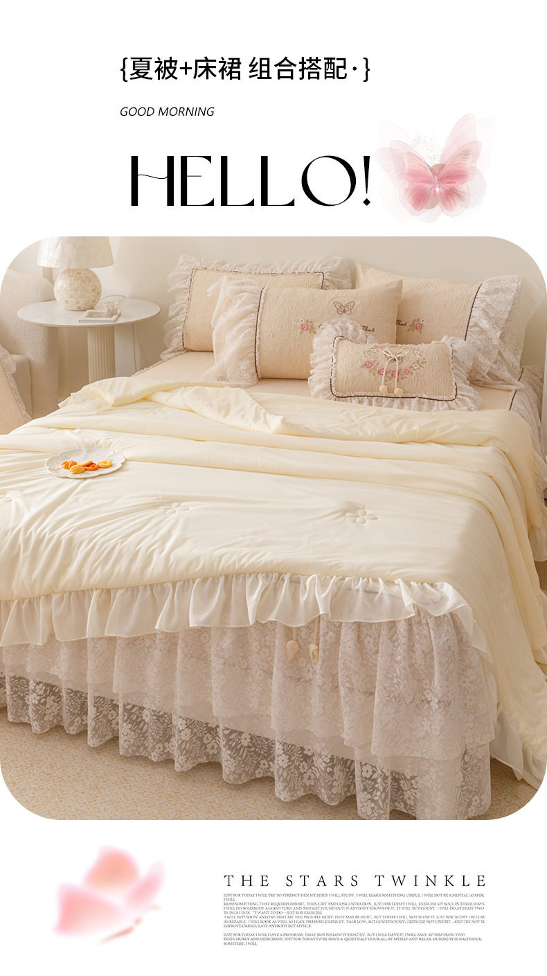 被子 > 夏被 > 好儿喜家纺 2026新款软凉席空调软席乙纶凉席床裙可机洗夏被夏凉被空调被四件套-漫夏系列 漫夏-香槟