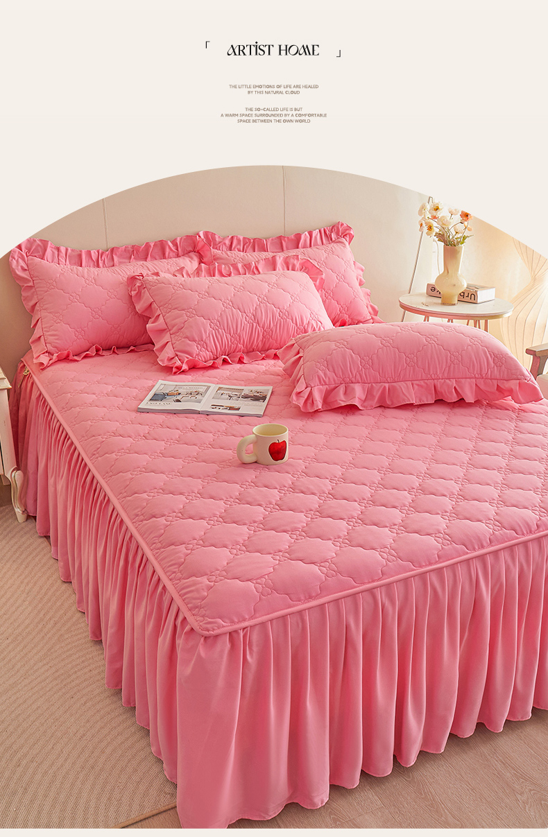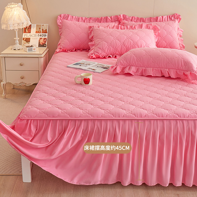 怡源梦 2026新款幸运草夹棉床裙床裙单品床裙单件 幸运草-粉色