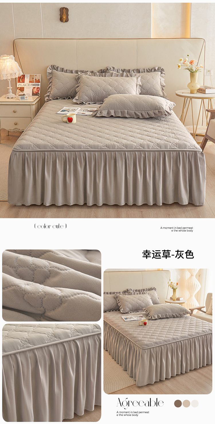 (总)怡源梦 2026新款幸运草夹棉床裙四件套,幸运草-灰色,幸运草-纯白,幸运草-大红,幸运草-豆沙,幸运草-粉色,幸运草-兰色,幸运草-米黄,幸运草-玉色