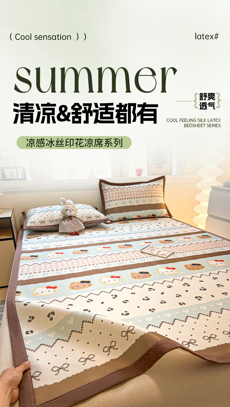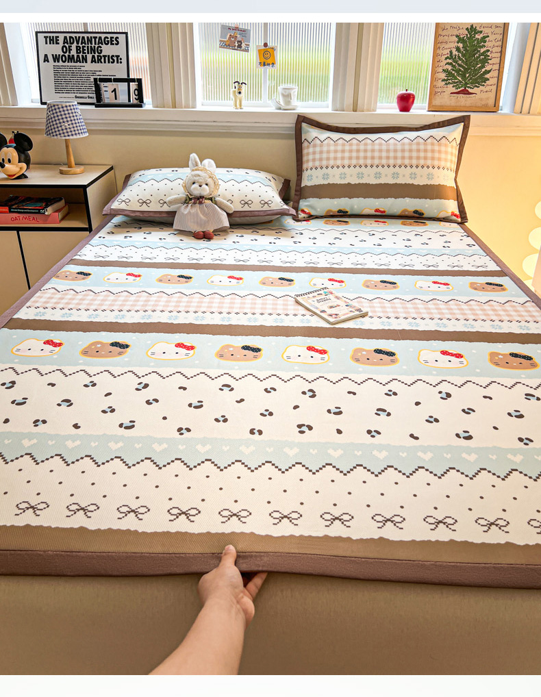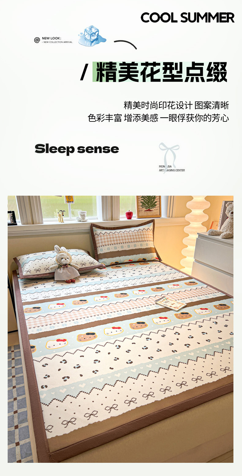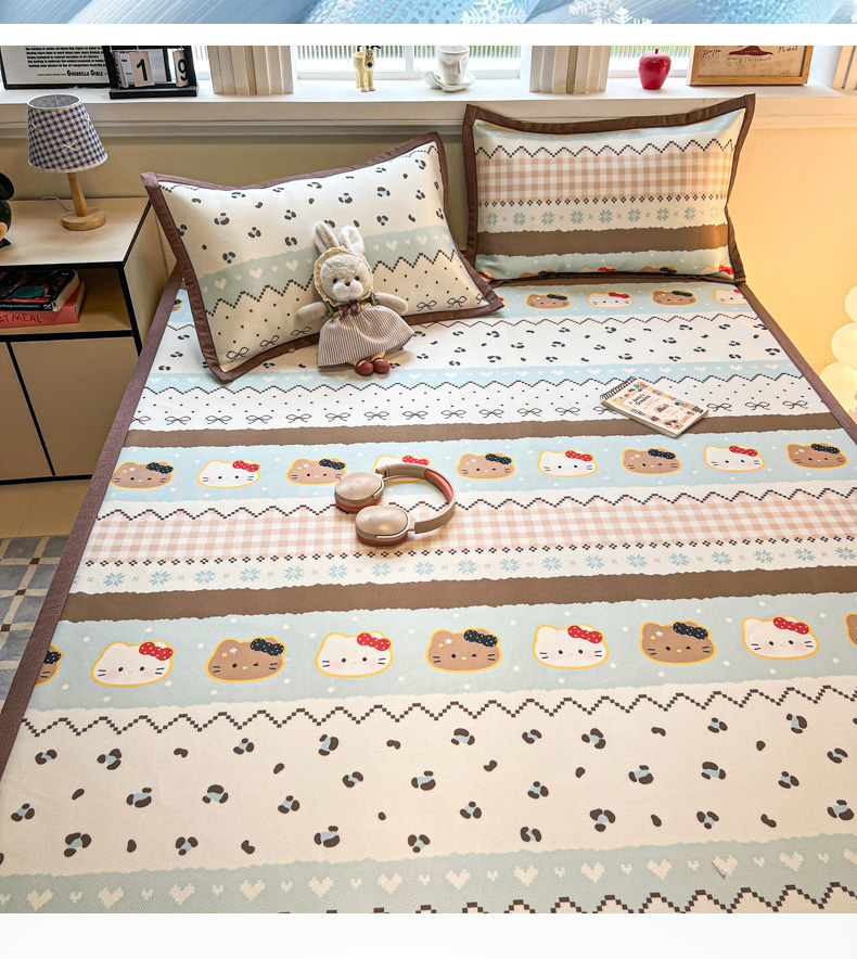 (总)女子家纺 2026新款费尔岛风冰丝凉席,费尔岛马,粉格西高,红调猫咪,蓝兔奶冻,奶咖喵语,甜心凯蒂,夏日海星,叶叶兔眠