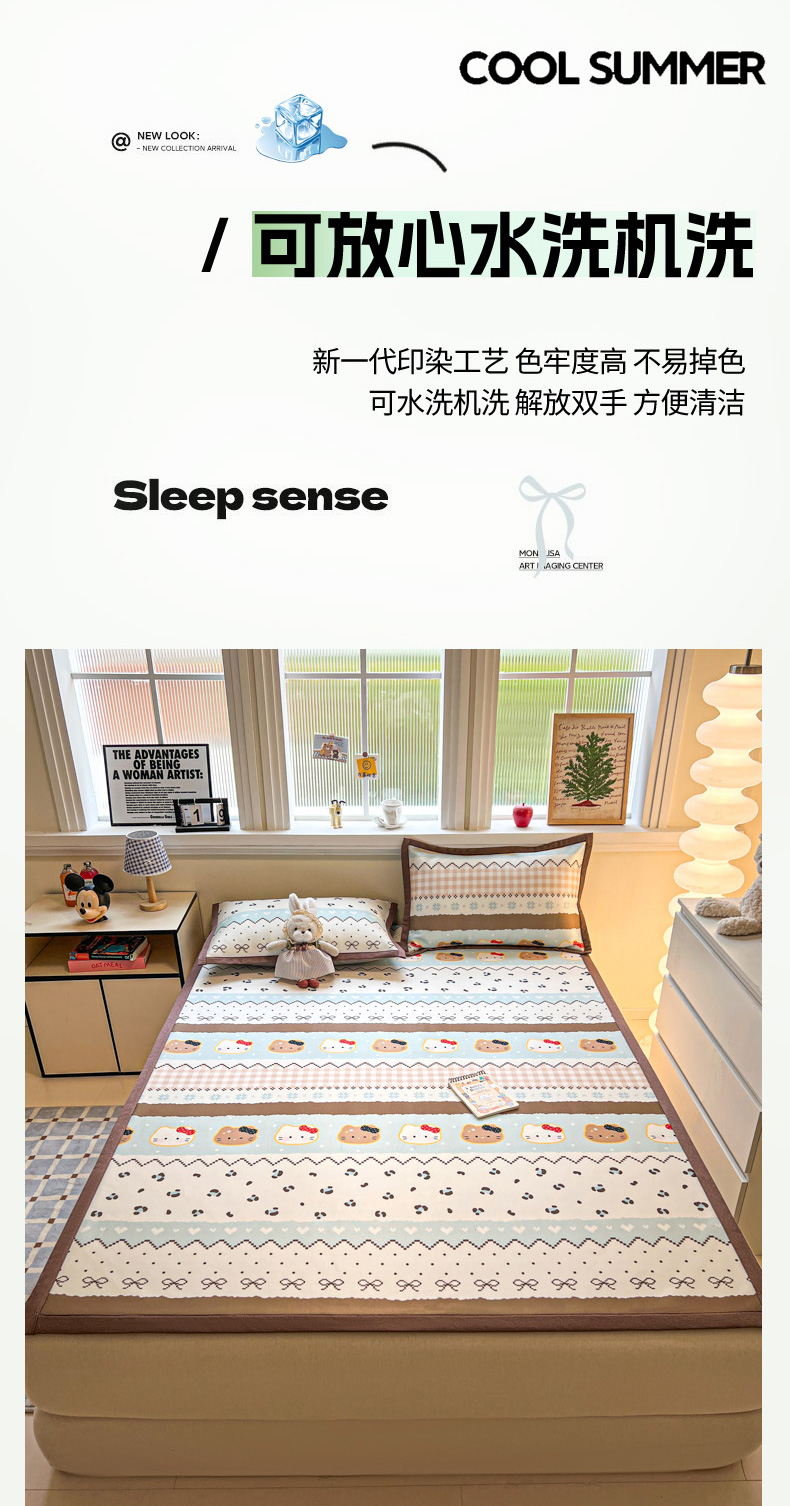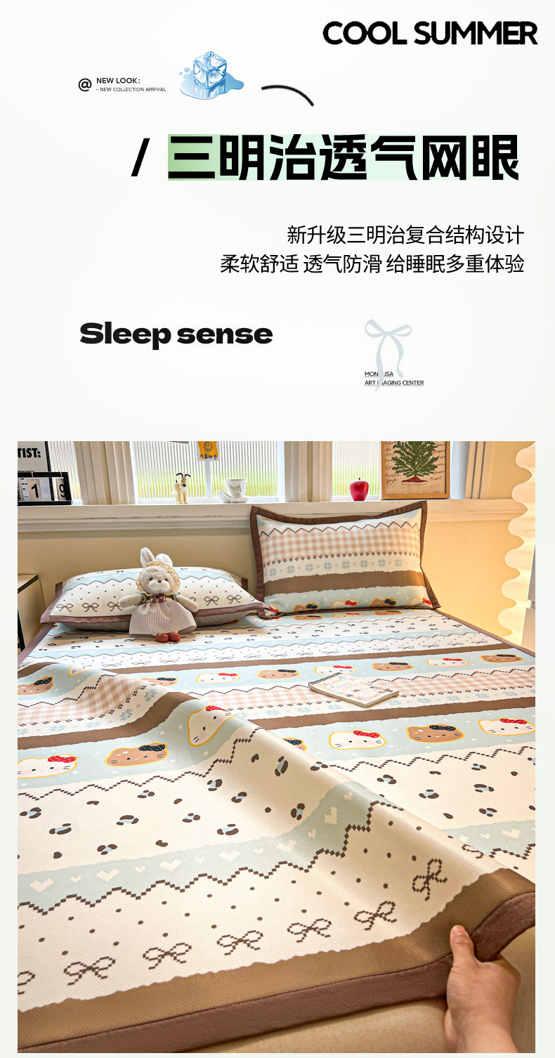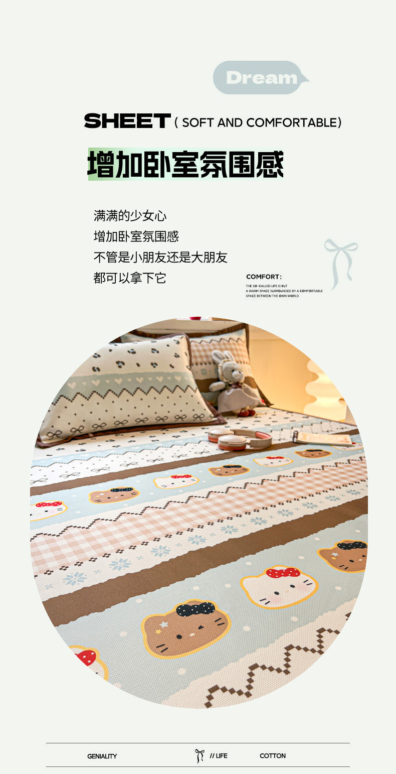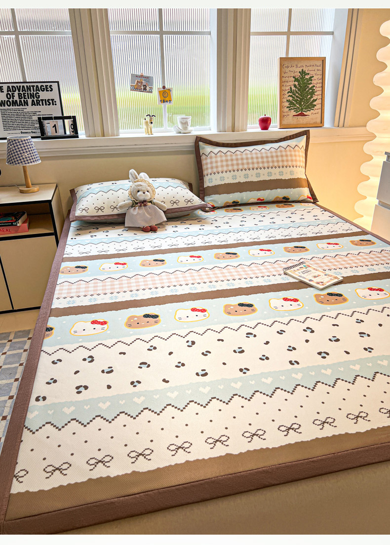(总)女子家纺 2026新款费尔岛风冰丝凉席,费尔岛马,粉格西高,红调猫咪,蓝兔奶冻,奶咖喵语,甜心凯蒂,夏日海星,叶叶兔眠
