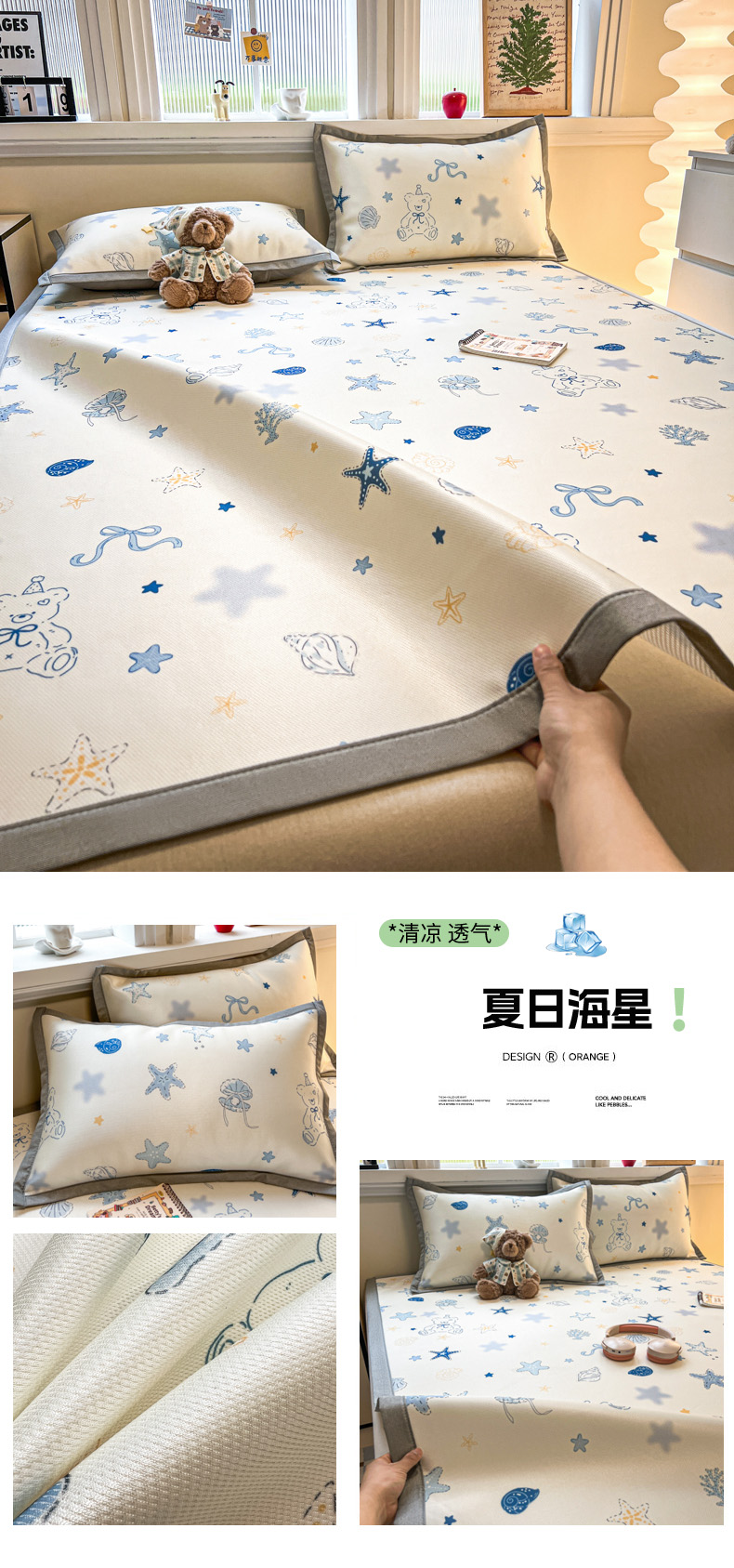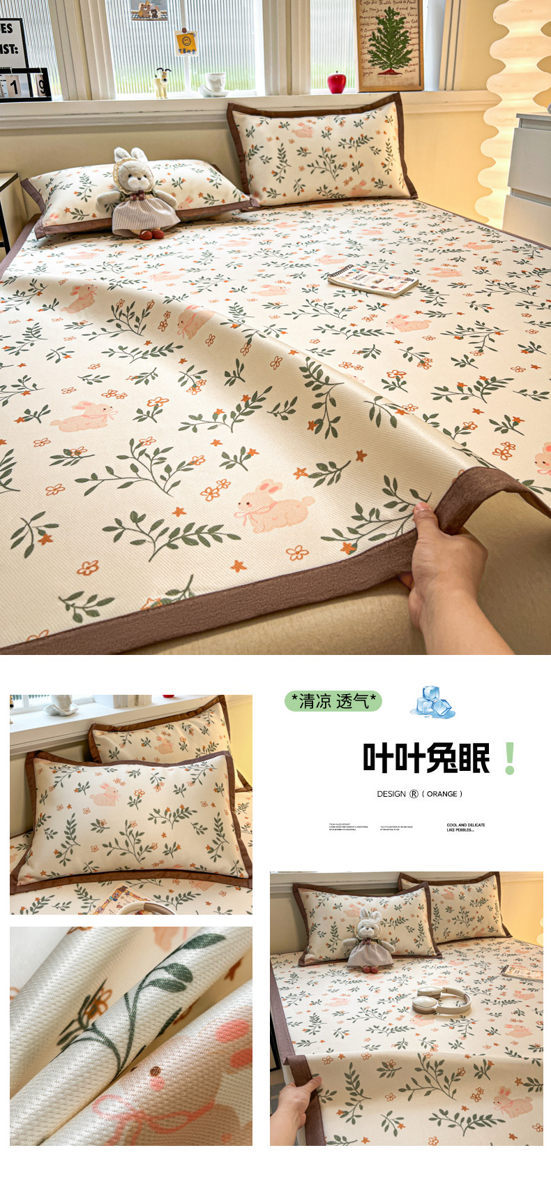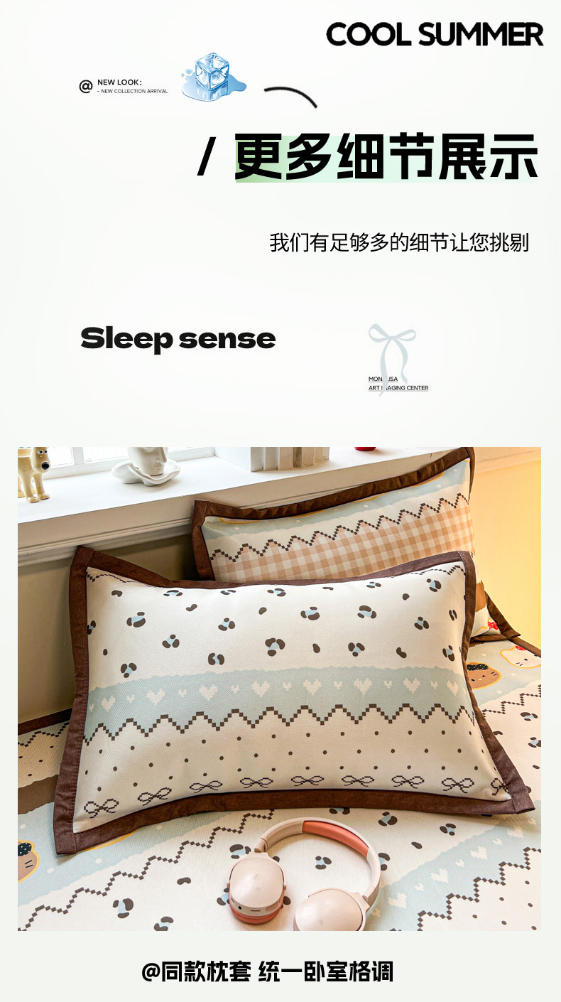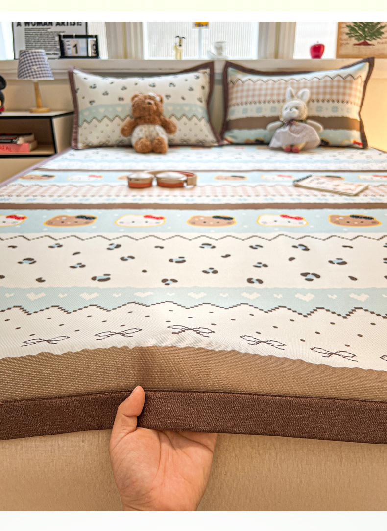 (总)女子家纺 2026新款费尔岛风冰丝凉席,费尔岛马,粉格西高,红调猫咪,蓝兔奶冻,奶咖喵语,甜心凯蒂,夏日海星,叶叶兔眠