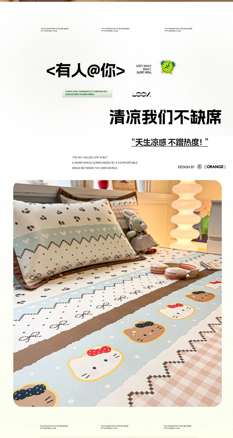 (总)女子家纺 2026新款大斜纹复合冰丝凉席-床席款,爱心气泡粉,萌熊印象,奶油草莓,拈花湾兰,七彩龙,奇妙幻想,水木年华,午后茶花,悠悠小元,尤克里里粉
