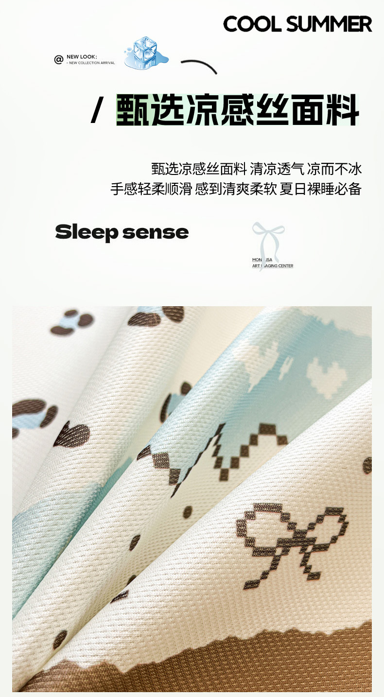 (总)女子家纺 2026新款费尔岛风冰丝凉席夏被套件系列,费尔岛马,粉格西高,红调猫咪,蓝兔奶冻,奶咖喵语,甜心凯蒂,夏日海星,叶叶兔眠