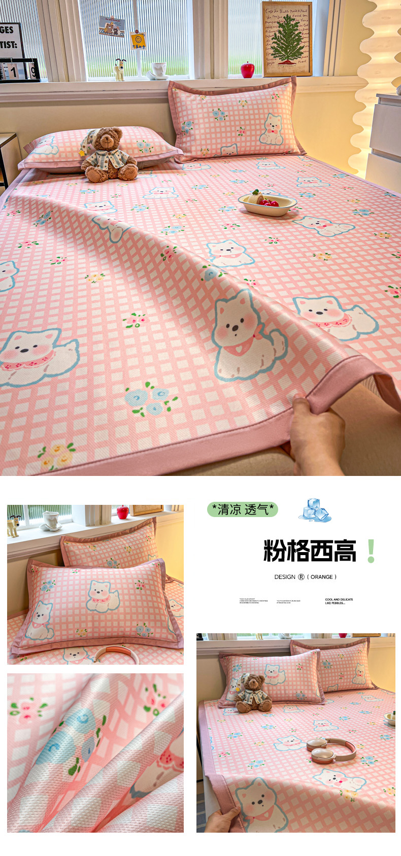 • 91家纺网 家纺一手货源 找家纺 (总)女子家纺 2026新款大斜纹复合冰丝凉席-床席款,爱心气泡粉,萌熊印象,奶油草莓,拈花湾兰,七彩龙,奇妙幻想,水木年华,午后茶花,悠悠小元,尤克里里粉