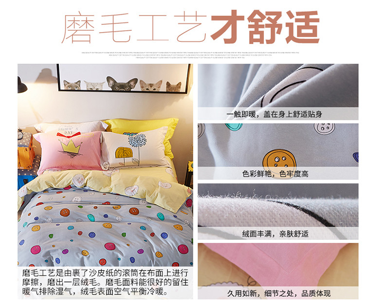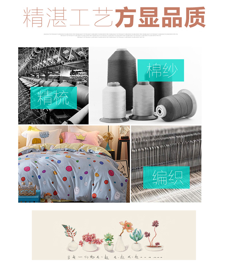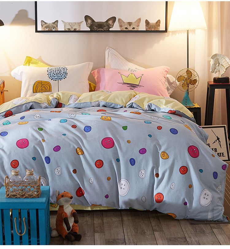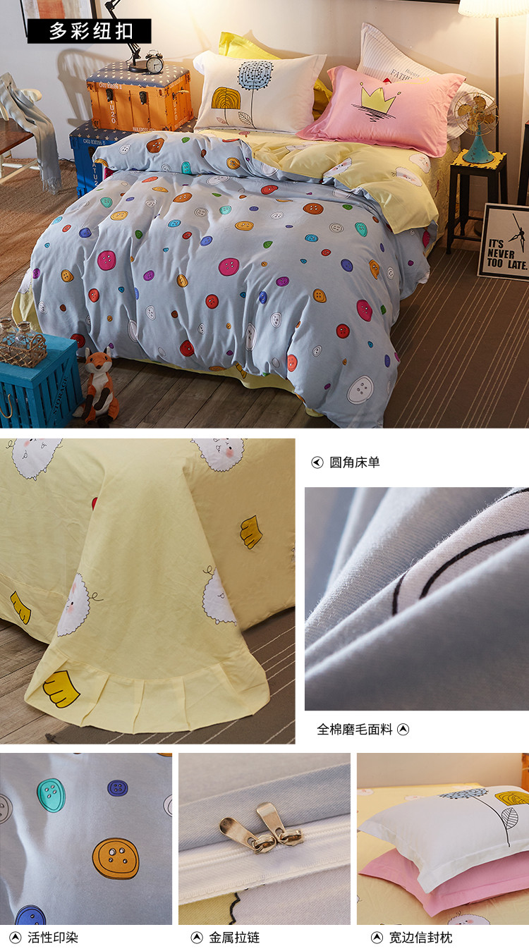 芃成家纺 活性磨毛混搭四件套多彩纽扣