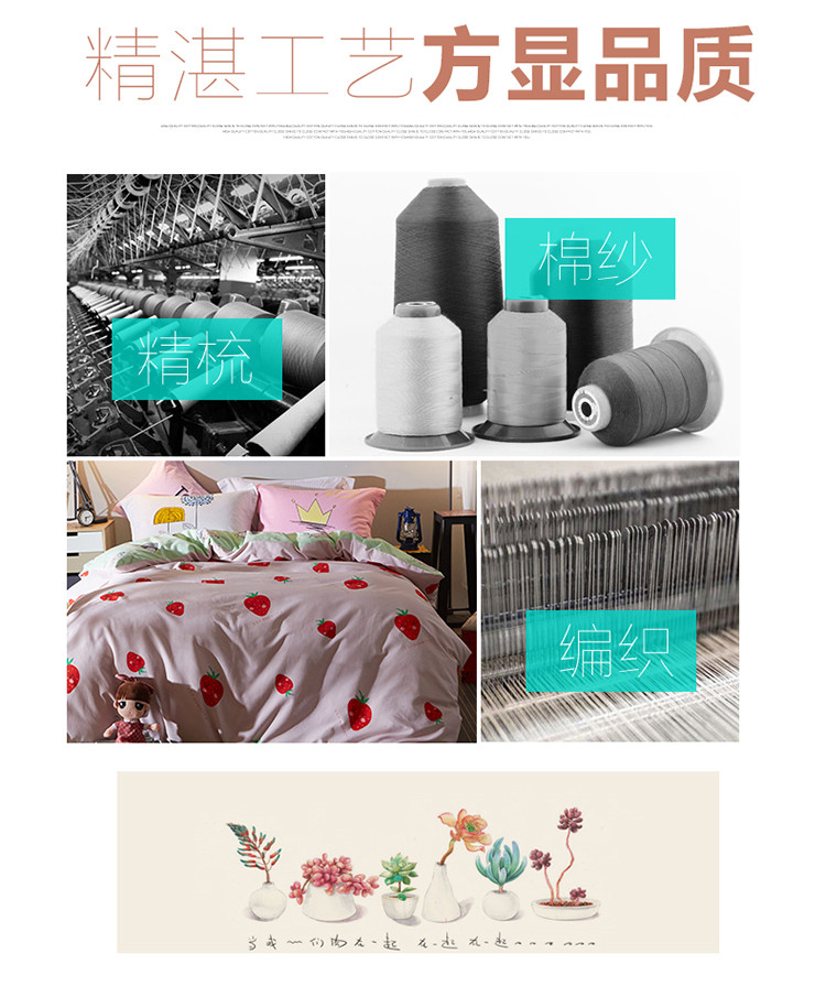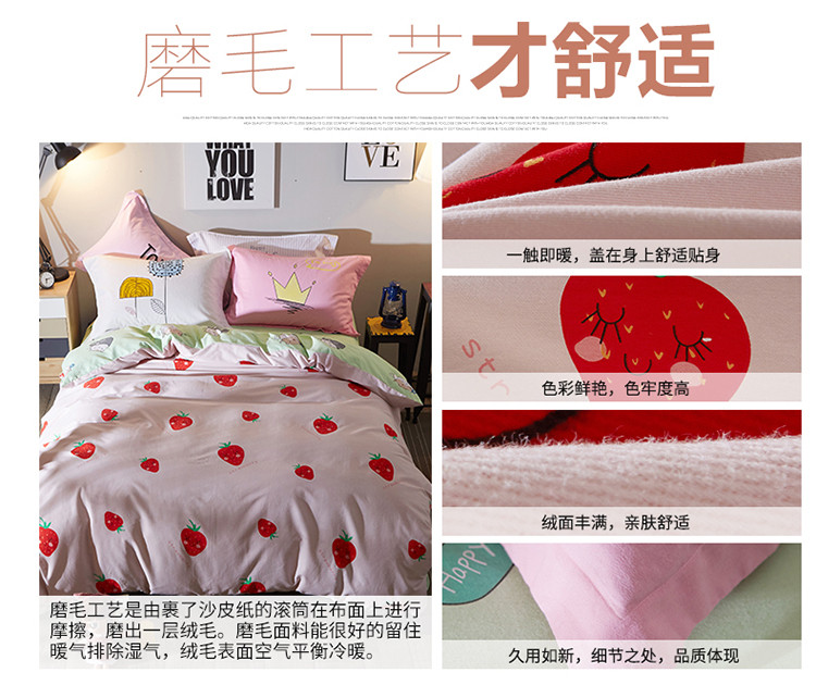 芃成家纺 活性磨毛混搭四件套羞羞莓