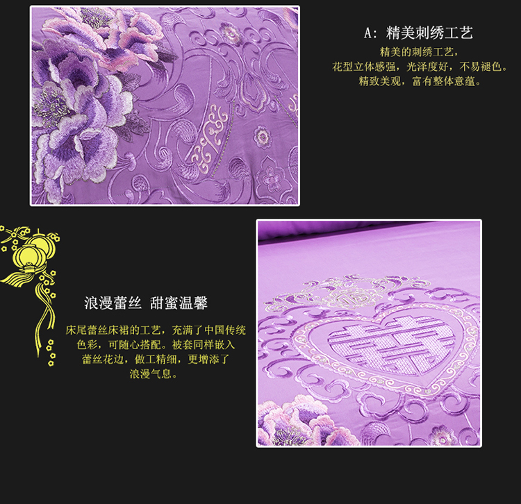 (总)慕她家纺 2025新款磨毛婚庆四件套结婚刺绣花床品六喜庆,爱的约定,百年同心,恩恩爱爱,花好月圆,两心相悦,龙凤传情,龙凤欢腾,龙凤情缘,玫瑰情缘,米兰风情,盛世龙凤,盛世庄园 大红,盛世庄园 经典灰,盛世庄园 孔雀兰,盛世庄园 浪漫玉,盛世庄园 魅力紫,盛世庄园 雅豆沙,双喜情缘,天缘巧合,天作之合,喜笑颜开,幸福满园,幸福如意,一见钟情,鸳鸯同心,张灯结彩